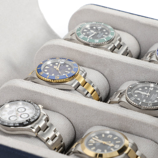 Timezone - Leren Watch roll voor 6 Horloges - Horloge Reisetui - Blauw