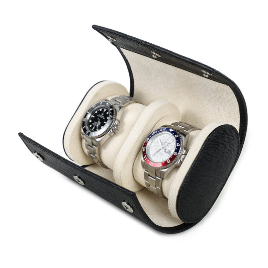 Timezone - Leren Watch roll voor 2 Horloges - Horloge Reisetui - Zwart
