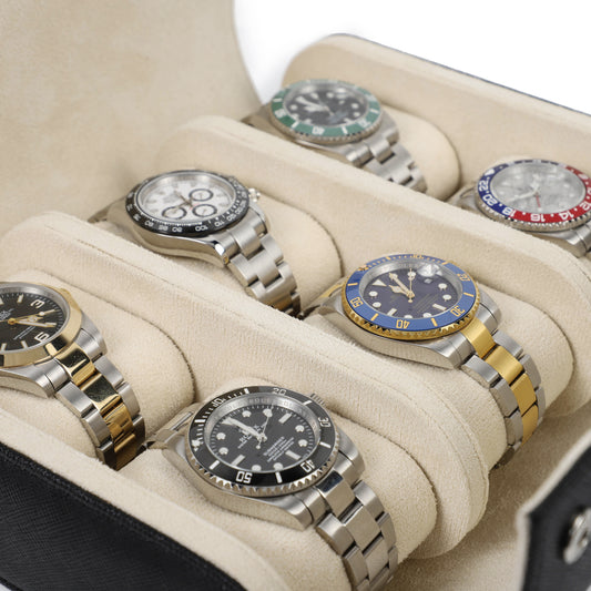 Timezone - Leren Watch roll voor 6 Horloges - Horloge Reisetui - Zwart