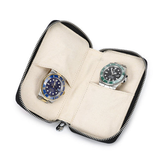 Timezone - Leren Etui voor 2 Horloges - Horloge Reisetui Zwart