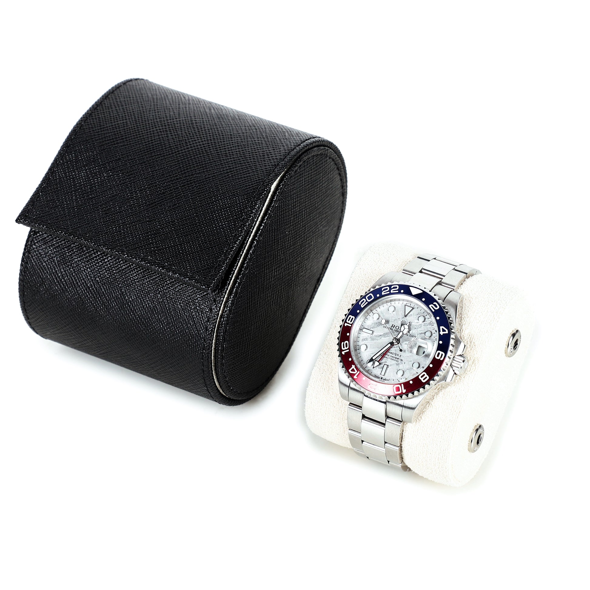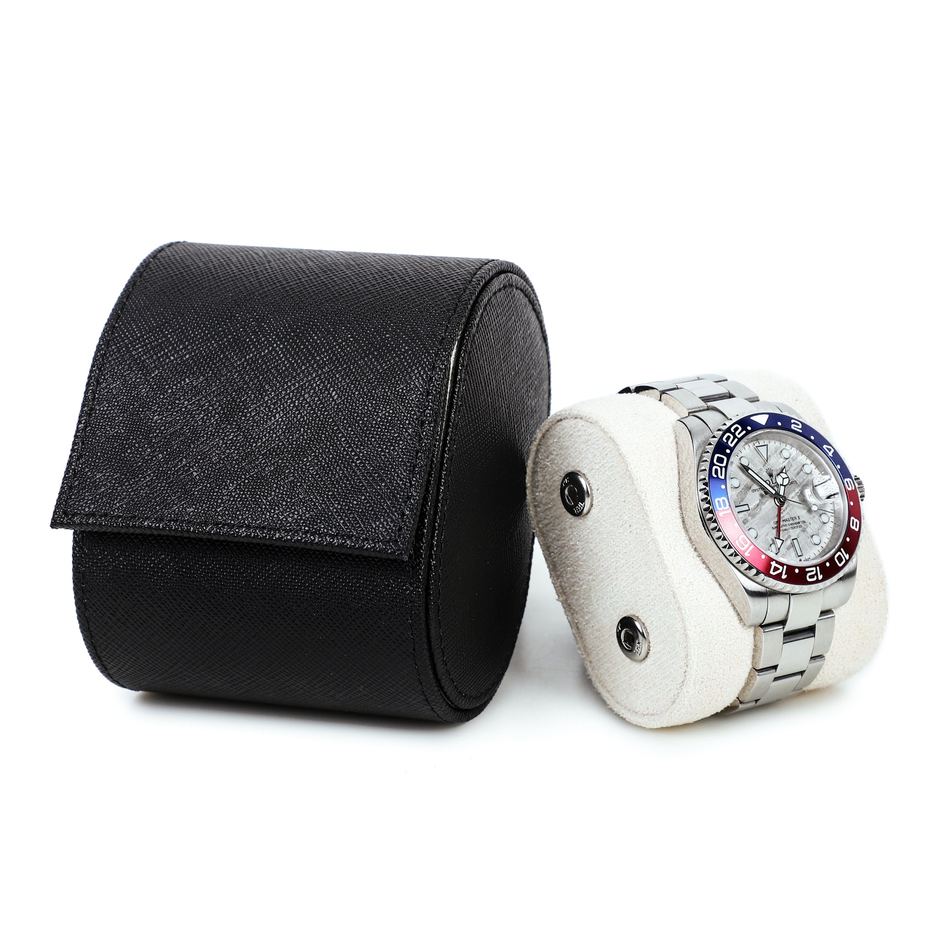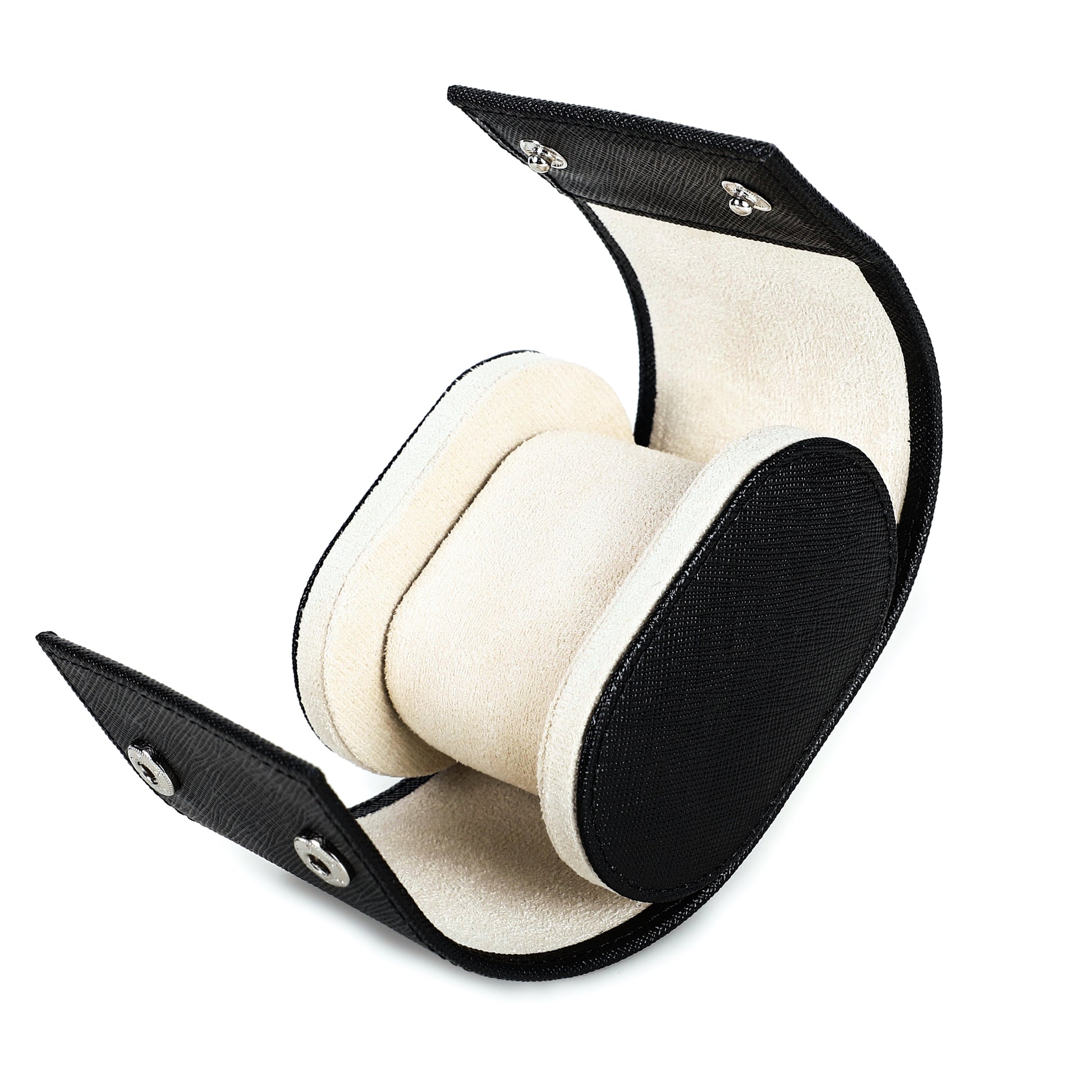 De Timezone watch roll is ontworpen om één horloge op te bergen. De compartimenten zijn gescheiden om ervoor te zorgen dat uw horloges goed beschermd zijn. De buitenkant van de watch roll kan worden gesloten met twee stevige, externe drukknopen, die ervoor zorgen dat het etui gesloten blijft tijdens het reizen.
