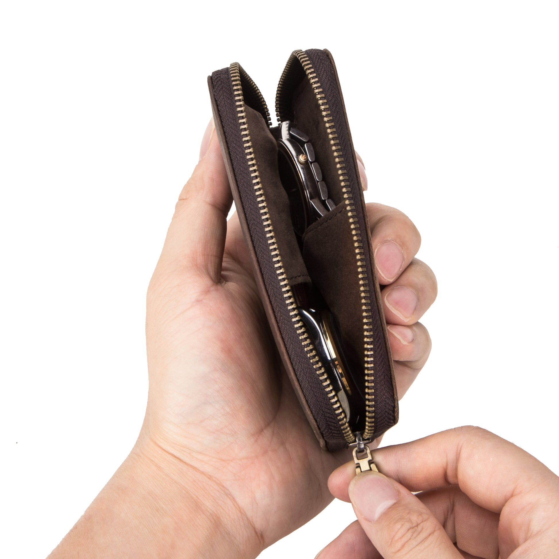 De Timezone Etui is ontworpen om twee horloges veilig op te bergen. De compartimenten zijn gescheiden om een optimale bescherming van uw horloges te garanderen. Het reisetui kan worden afgesloten met een robuuste ritssluiting, wat ervoor zorgt dat de etui gedurende uw reis veilig dicht blijft.