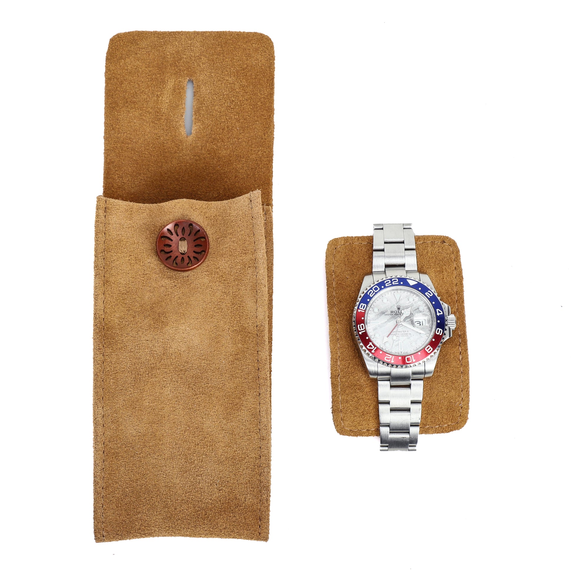 Ambachtelijk vervaardigd uit zacht leer, biedt deze horloge reisetui een luxueuze bescherming voor uw horloge. Het leer is diep geverfd, zorgvuldig opgeschuurd en afgewerkt met een beschermlaag, resulterend in een authentieke en verfijnde uitstraling.