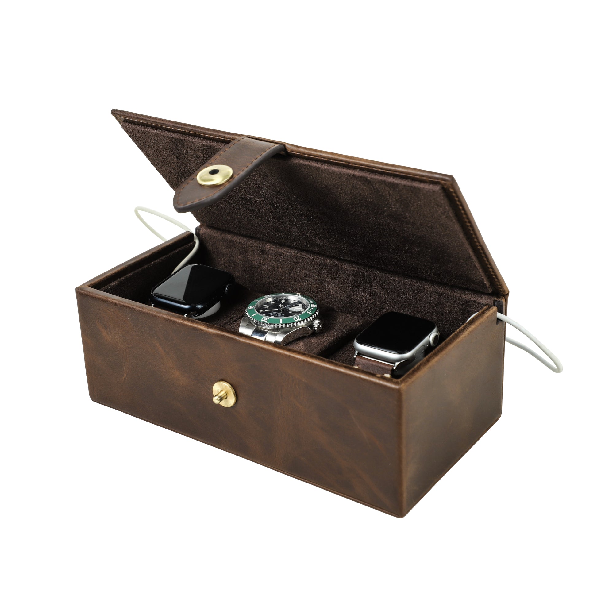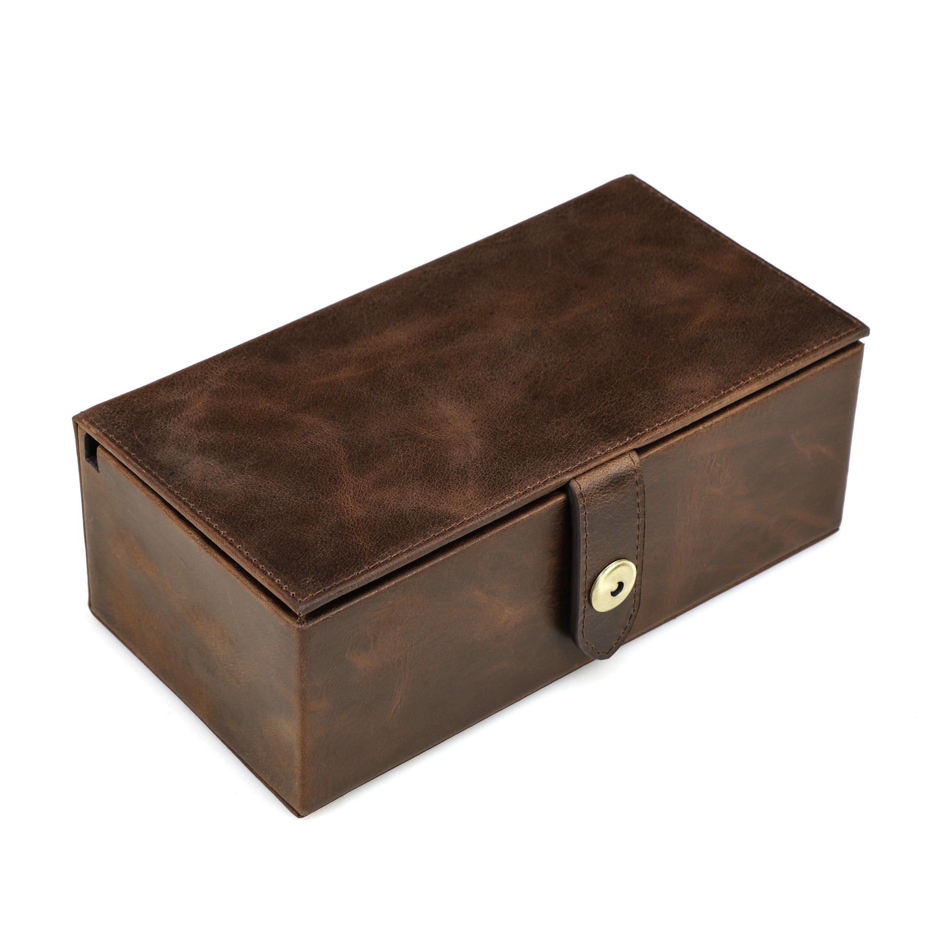 Deze horlogedoos heeft voldoende ruimte voor uw horlogecollectie, terwijl het toch een stijlvolle en compacte oplossing biedt voor thuis. Het is een ideale keuze voor iedereen die zijn horloges niet alleen veilig wil opbergen, maar ze ook wilt presenteren in een opbergoplossing die net zo verfijnd is als de horloges zelf.