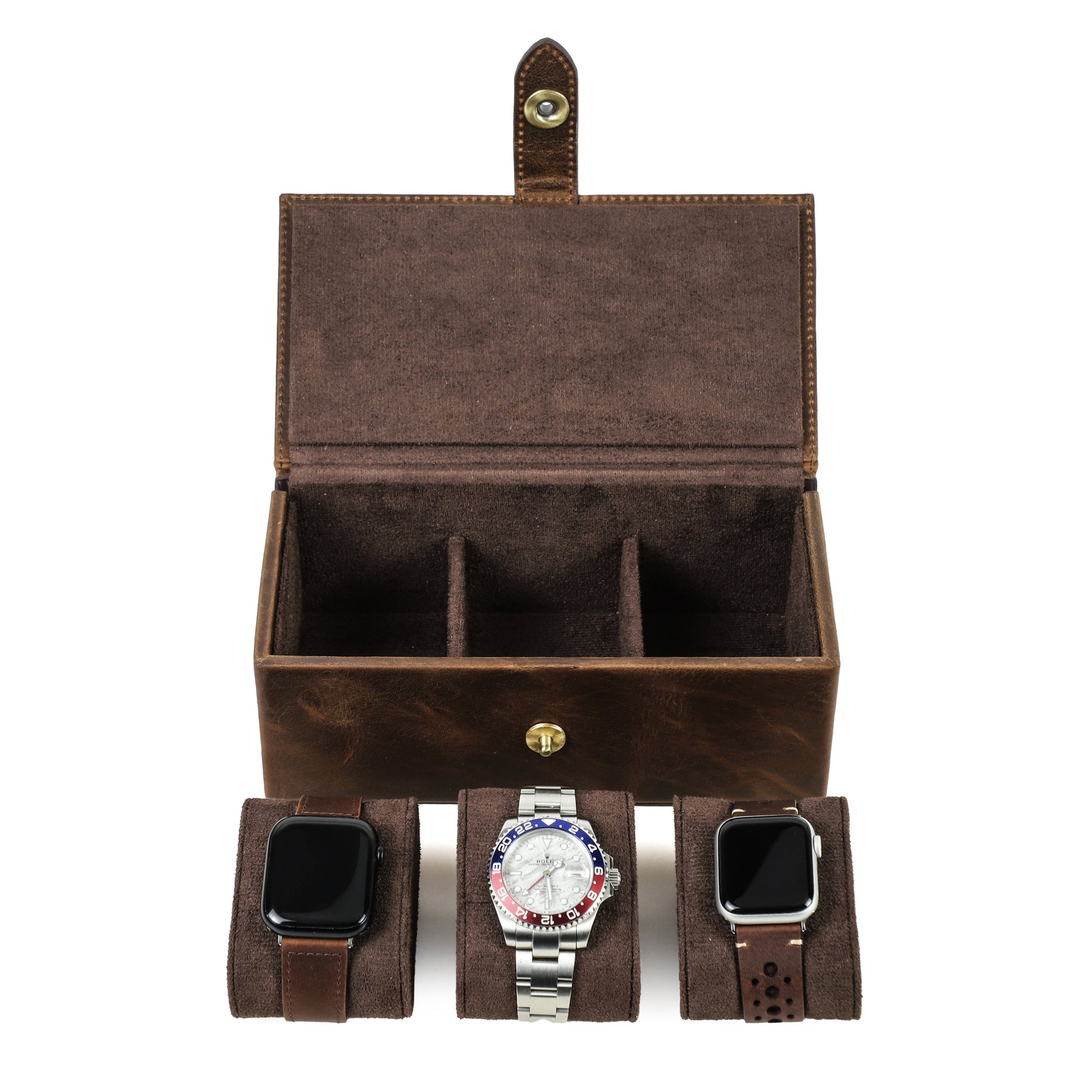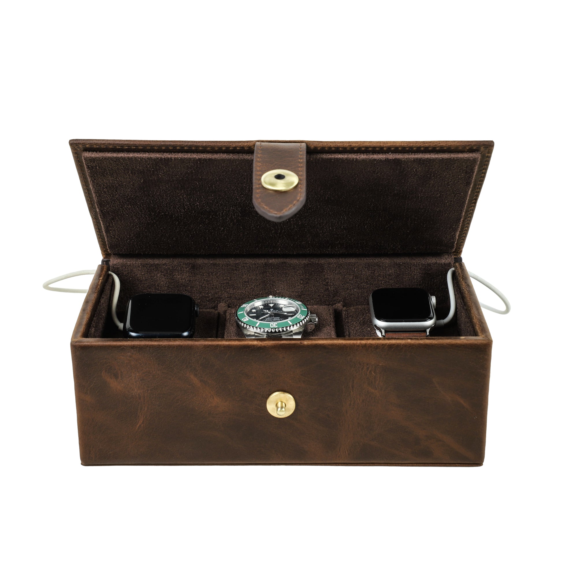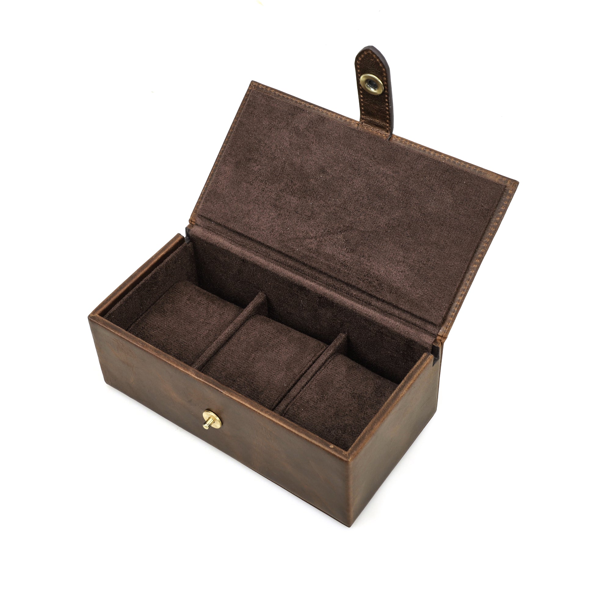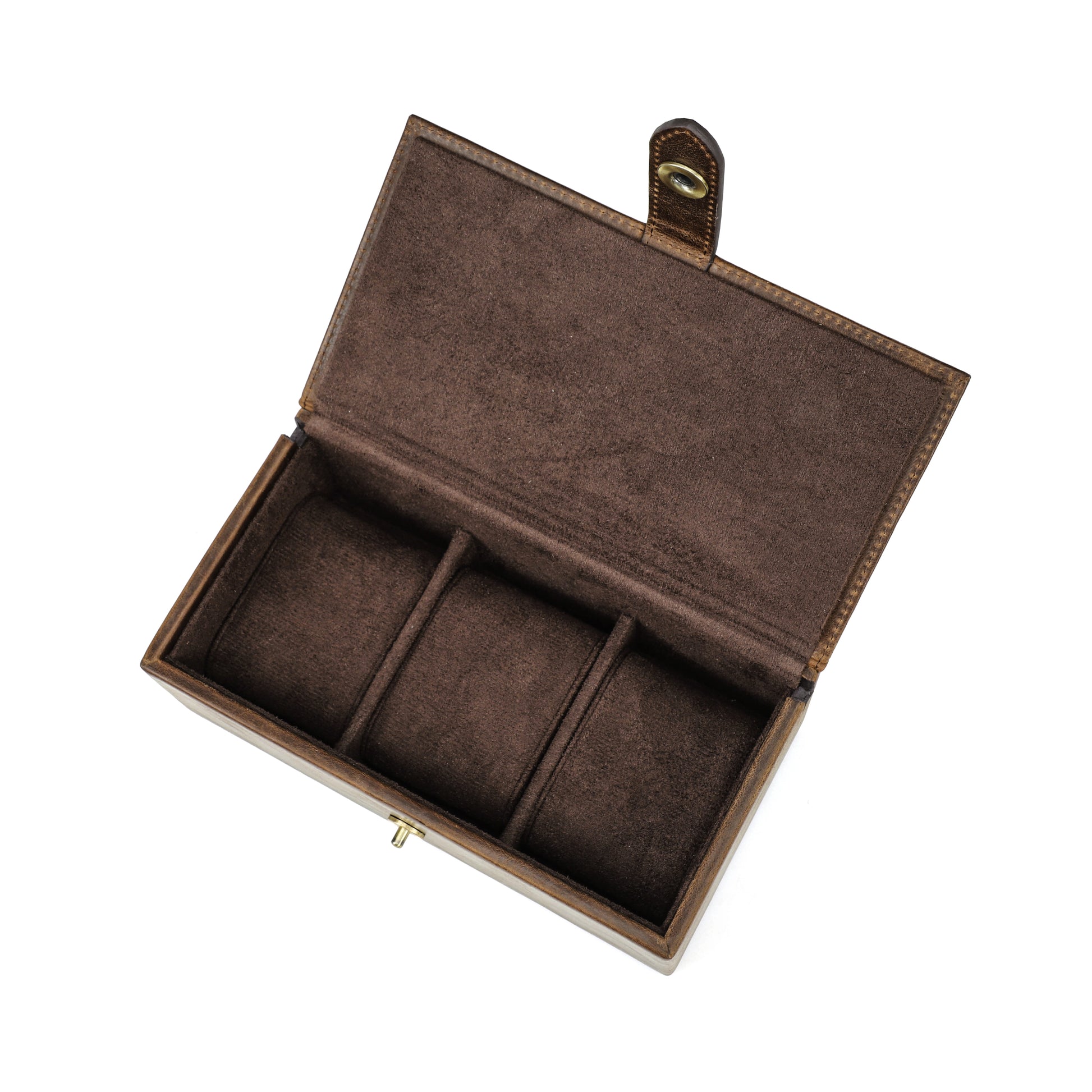 De Timezone horlogedoos is ontworpen om drie horloges veilig op te bergen. De individuele compartimenten zijn zo gemaakt dat elk horloge optimaal beschermd is tegen krassen en andere beschadigingen. De doos sluit met een elegant en functioneel mechanisme, waardoor uw horloges veilig opgeborgen blijven.