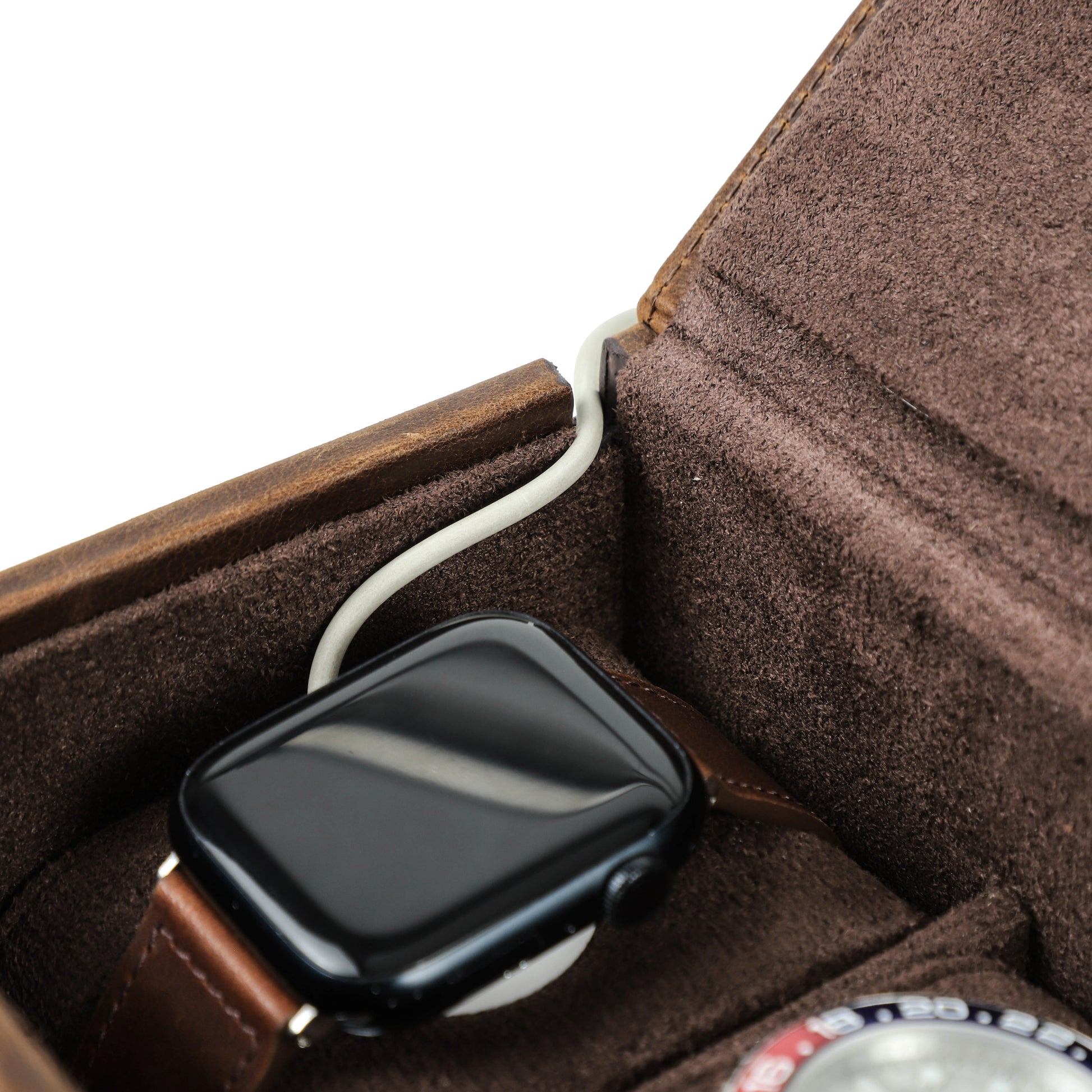 Vervaardigd uit authentiek leer en aan de binnenzijde bekleed met zacht alcantara suède, biedt deze horlogedoos een superieure en duurzame bescherming voor uw collectie. Het leer is volledig doorgeverfd, zorgvuldig opgeschuurd, en afgewerkt met een beschermende laag, wat resulteert in een pure en stijlvolle look.