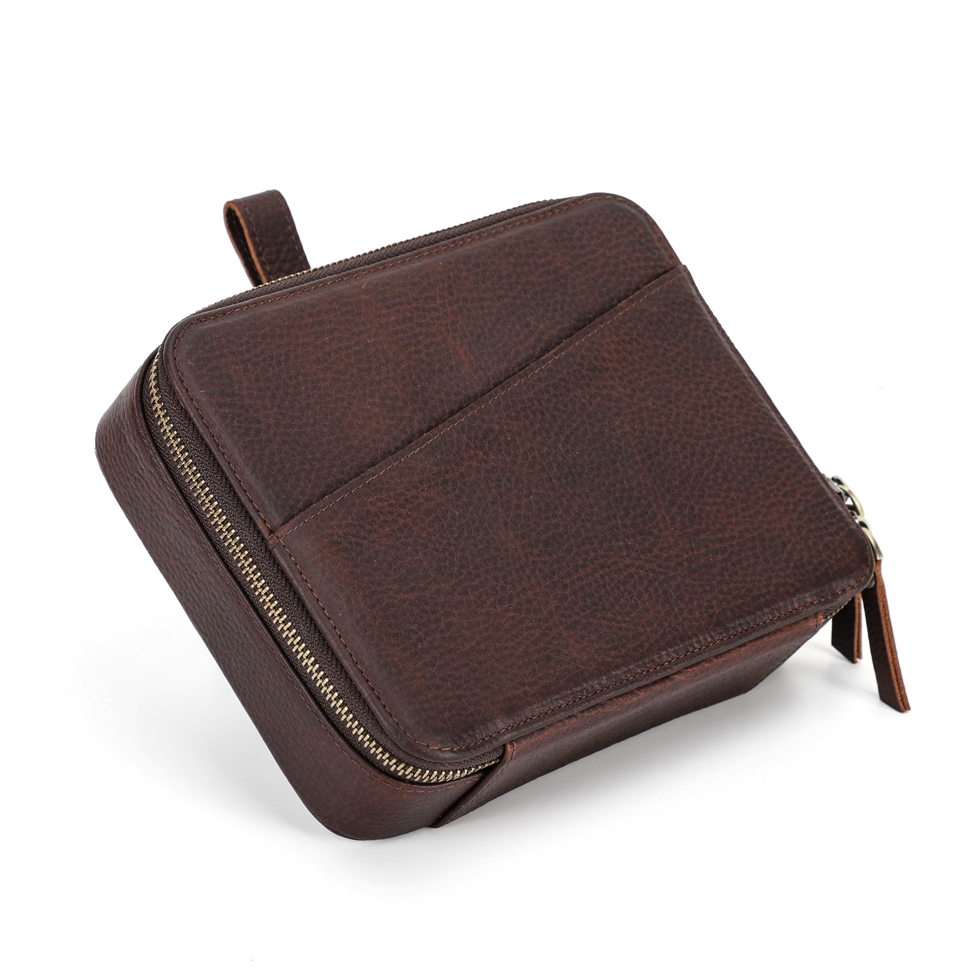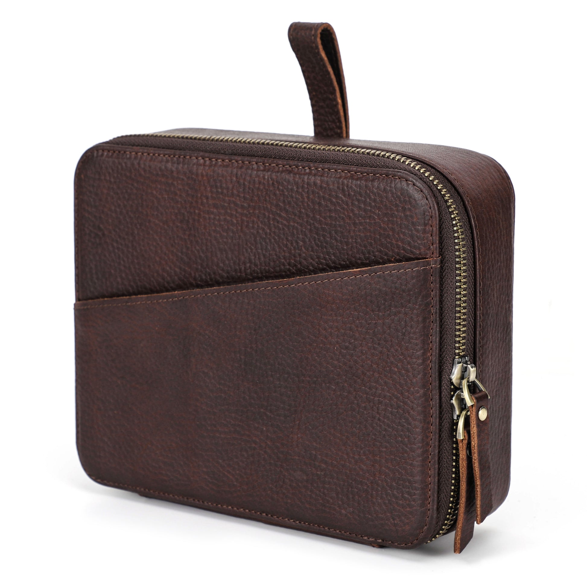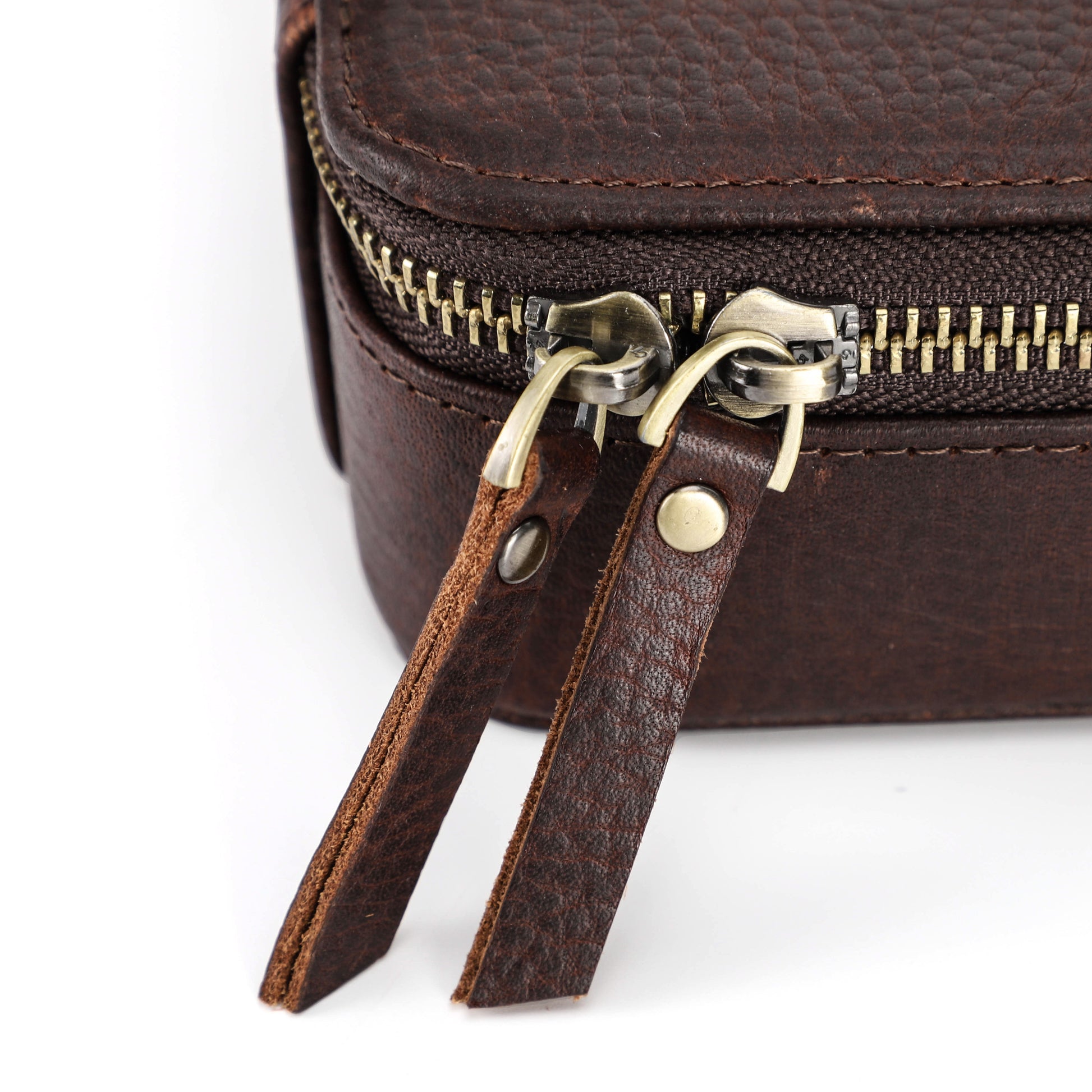 Handgemaakt van echt leer en afgewerkt met alcantara suède aan de binnenkant, biedt deze reisetui een luxe en duurzame bescherming voor uw horloge en uw horloge-accessoires. Het leer is door en door geverfd, opgeschuurd en voorzien van een finish, wat zorgt voor een pure en elegante uitstraling.