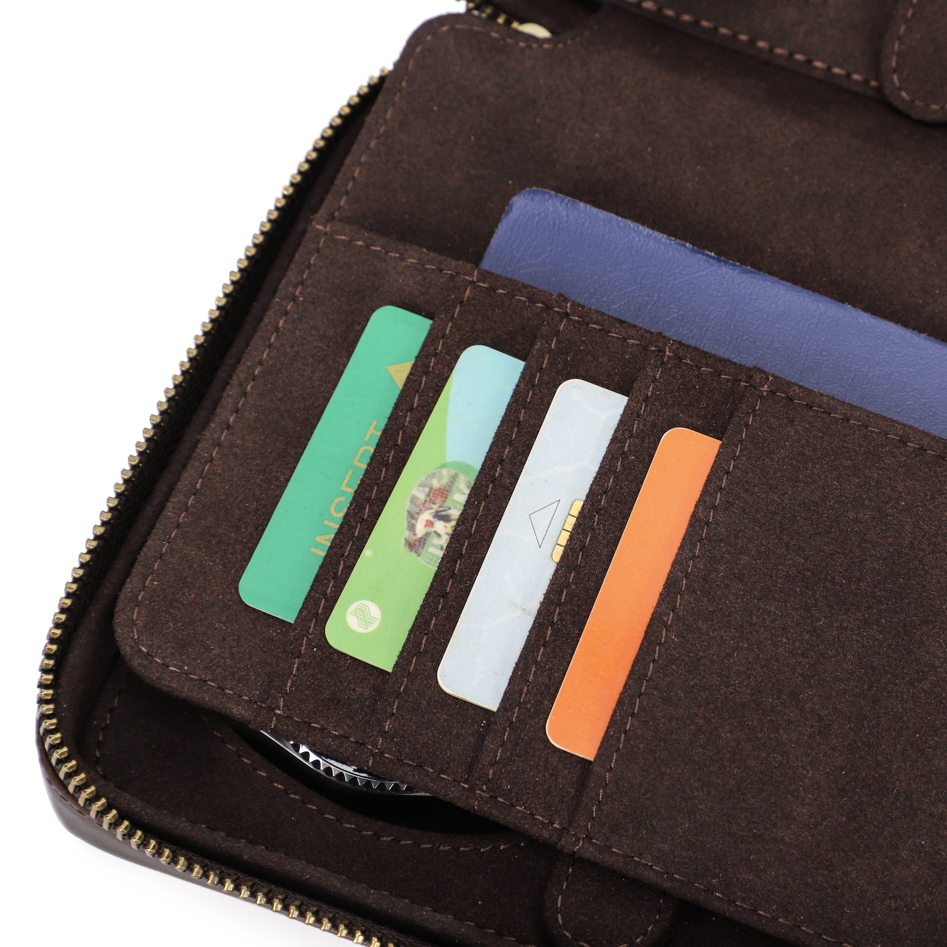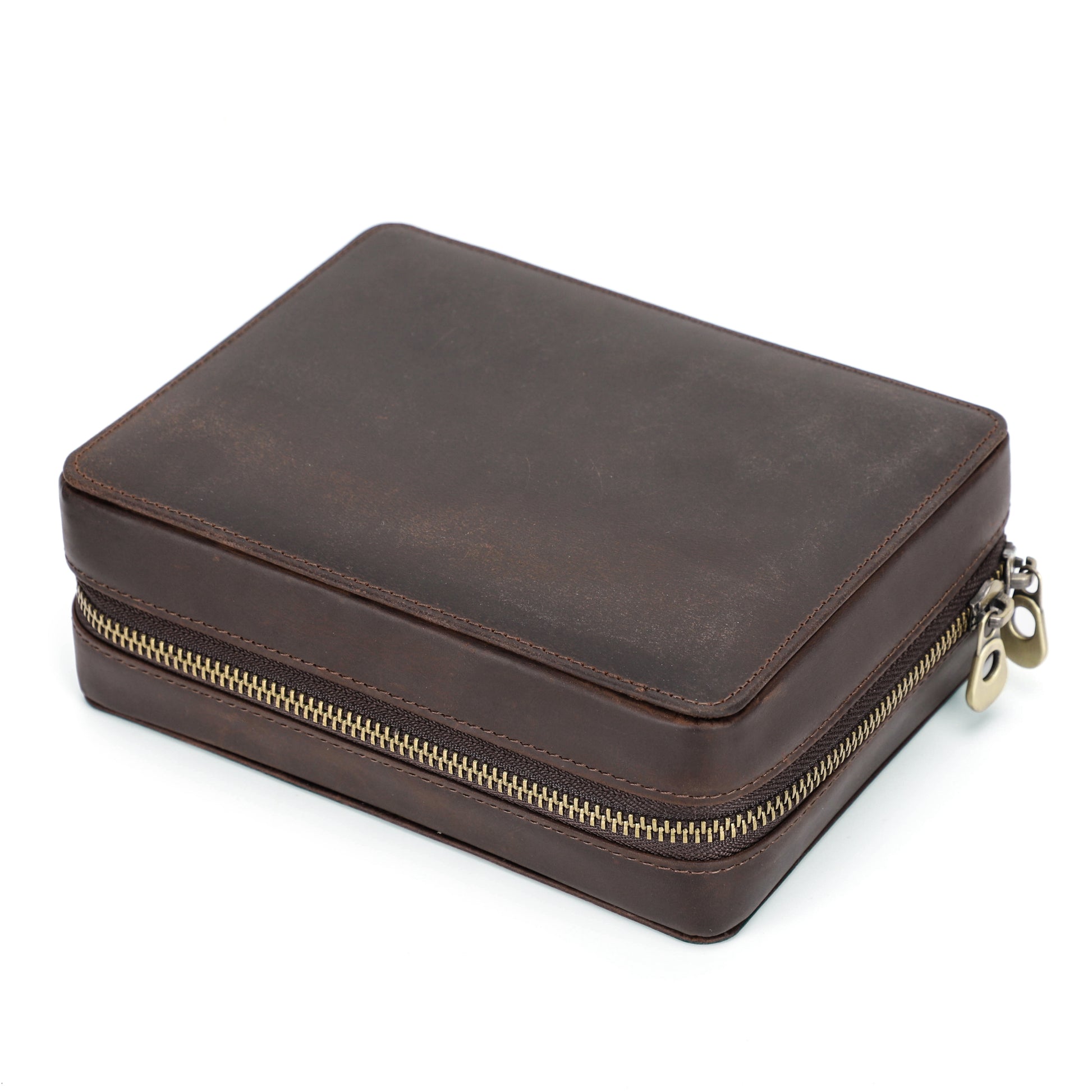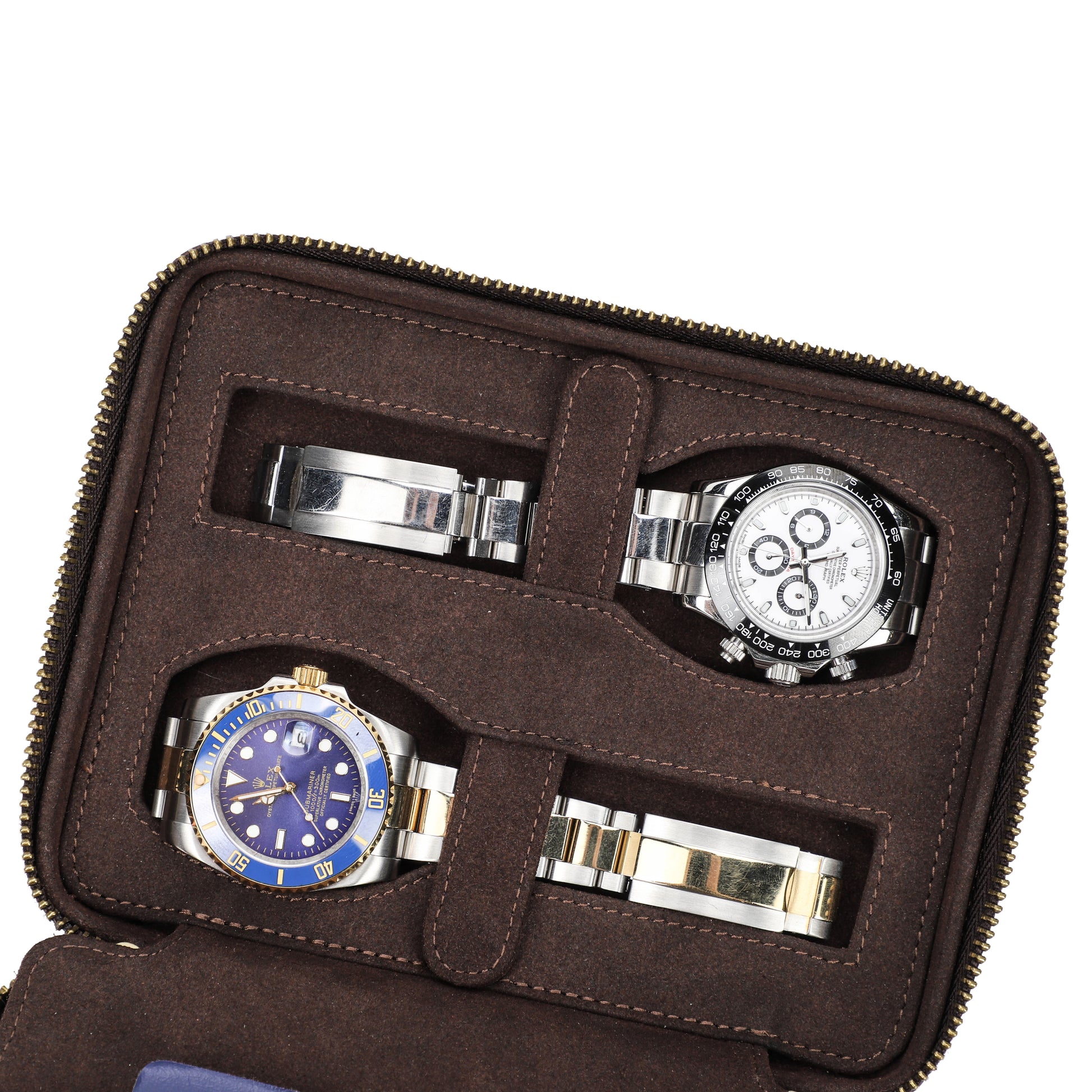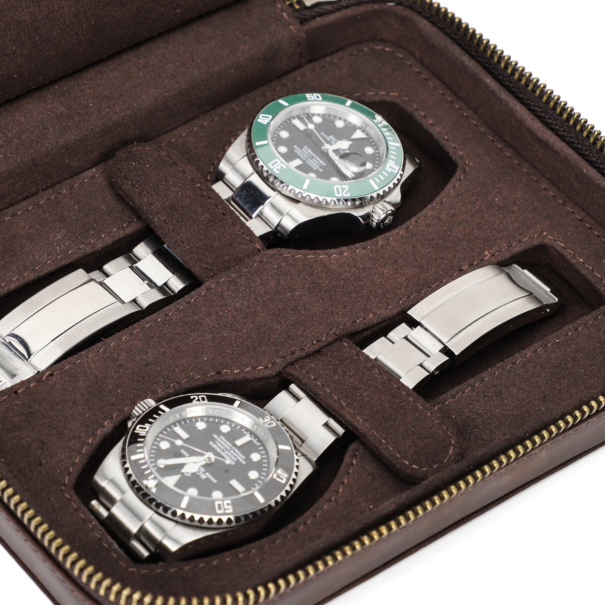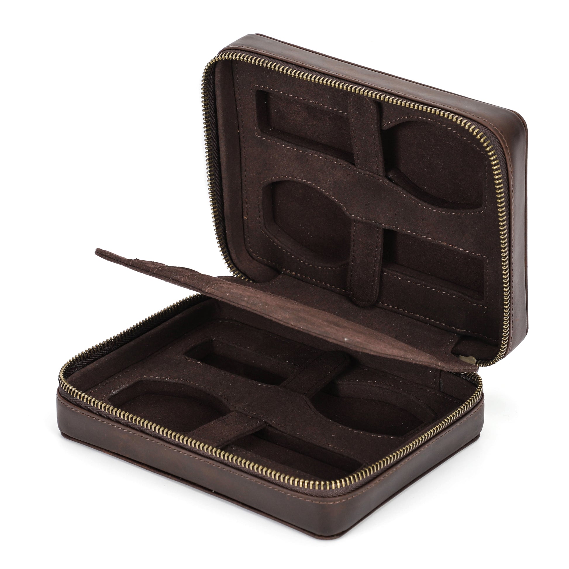 Timezone - Leren Reisetui voor 4 Horloges + pasjes en paspoort.
