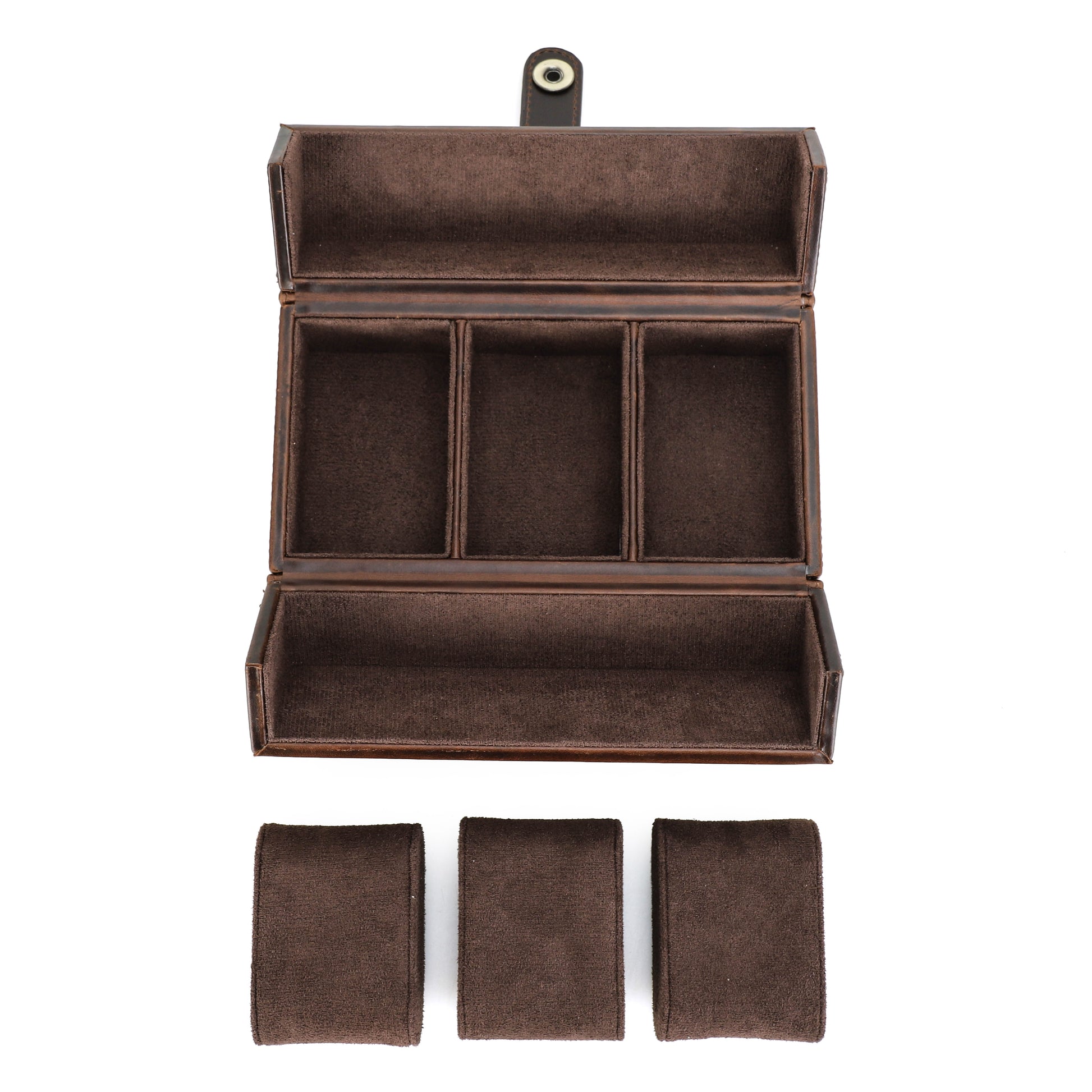 Timezone - Leren Watch roll voor 3 Horloges - Horloge reisetui