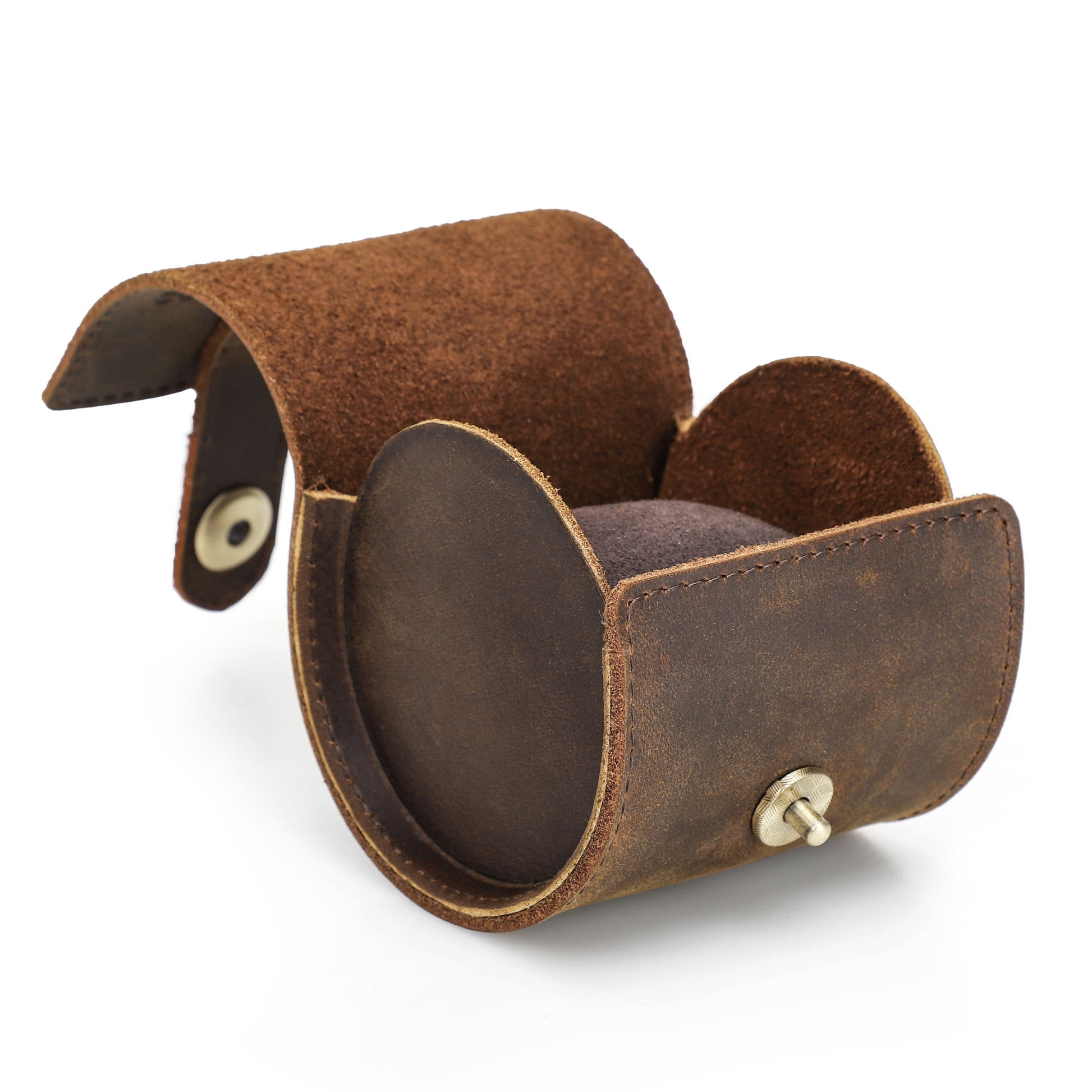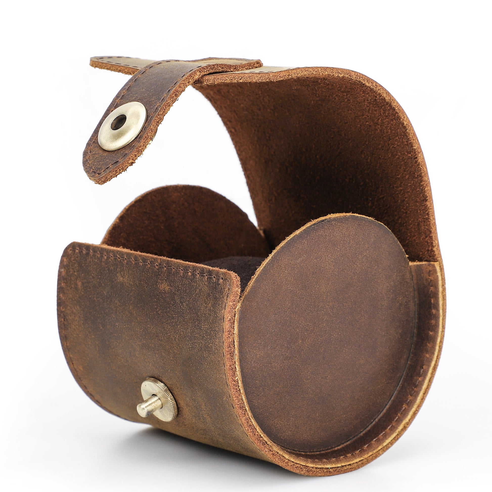 Handgemaakt van echt leer, biedt deze watch roll een luxe en duurzame bescherming voor uw horloges. De leersoort is door en door geverfd, opgeschuurd en voorzien van een finish, wat zorgt voor een pure en elegante uitstraling.