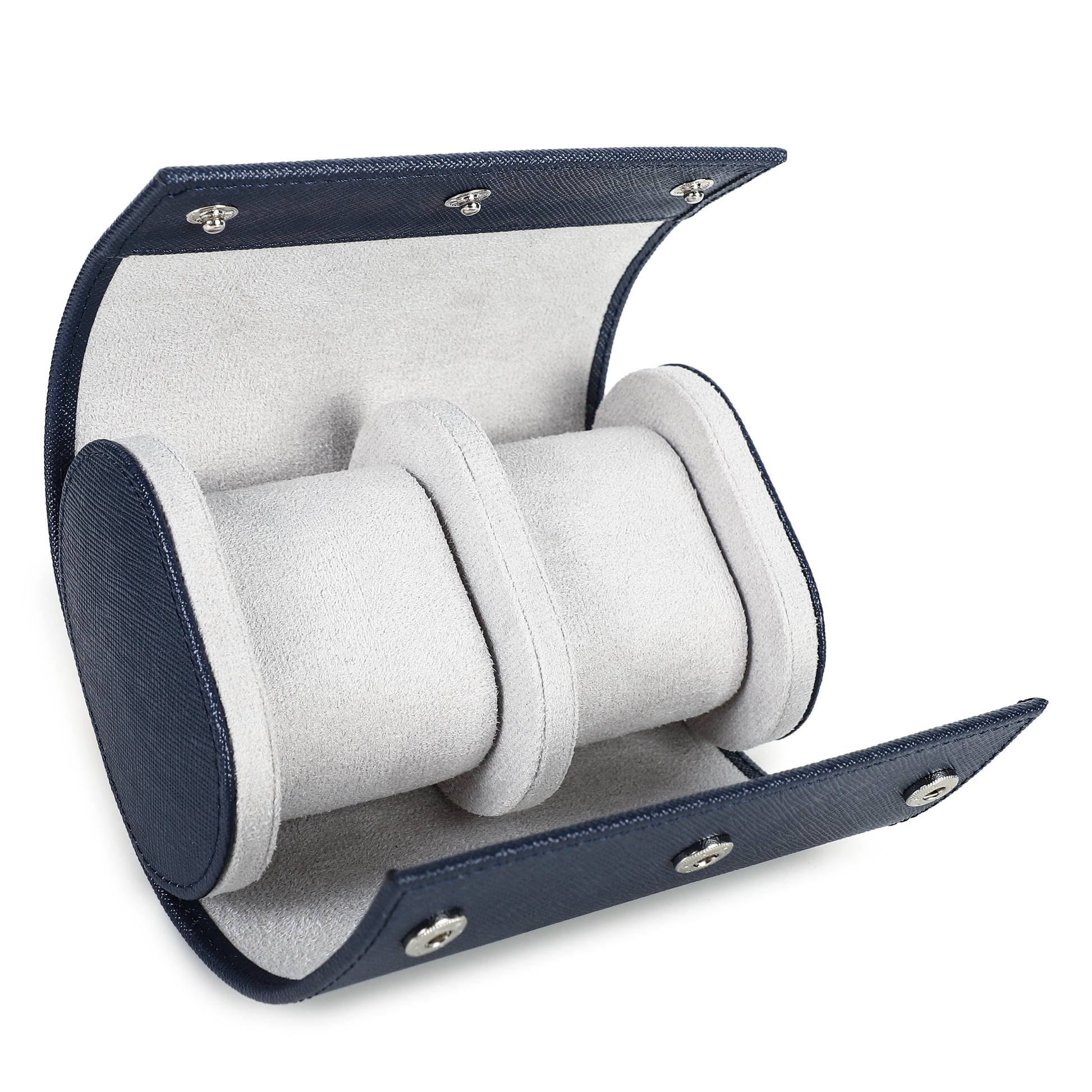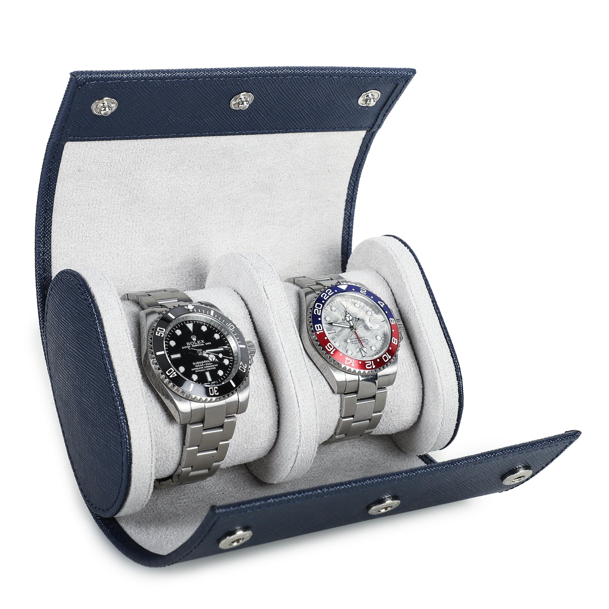 Timezone - Leren Watch roll voor 2 Horloges - Horloge Reisetui - Blauw