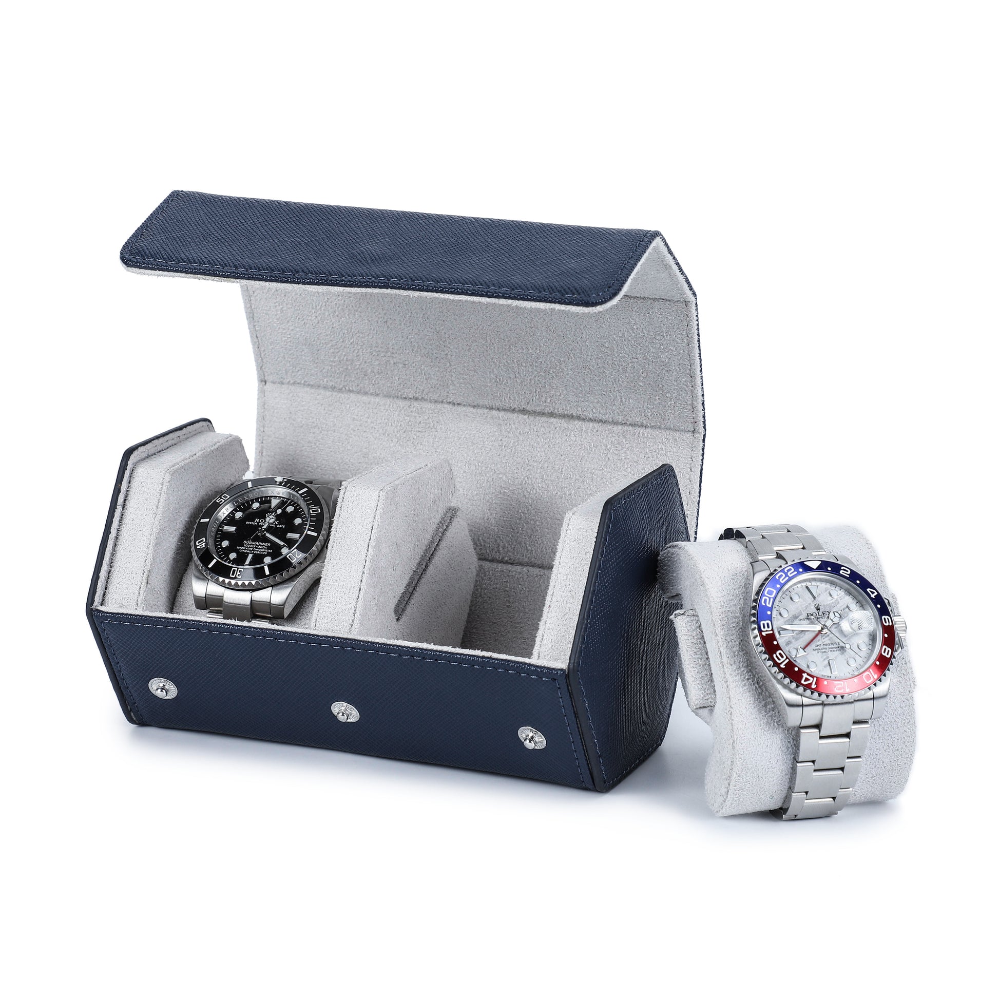 Timezone - Leren Watch roll voor 2 Horloges - Horloge Reisetui - Blauw