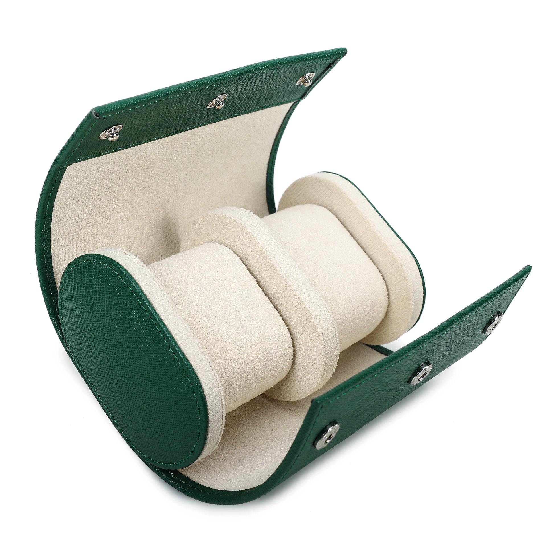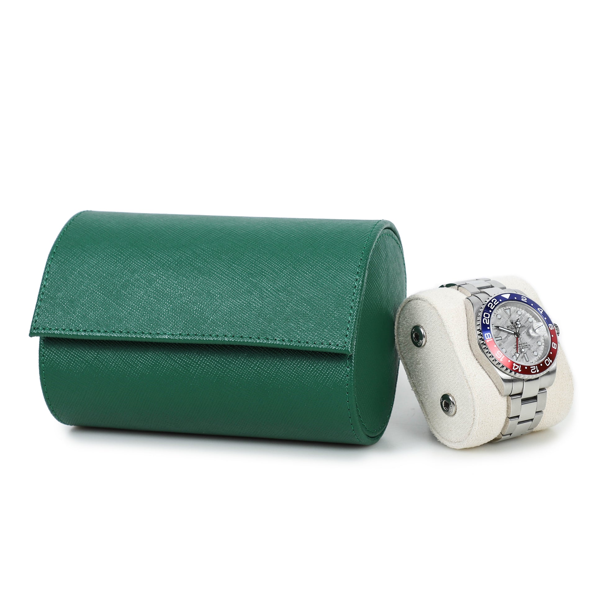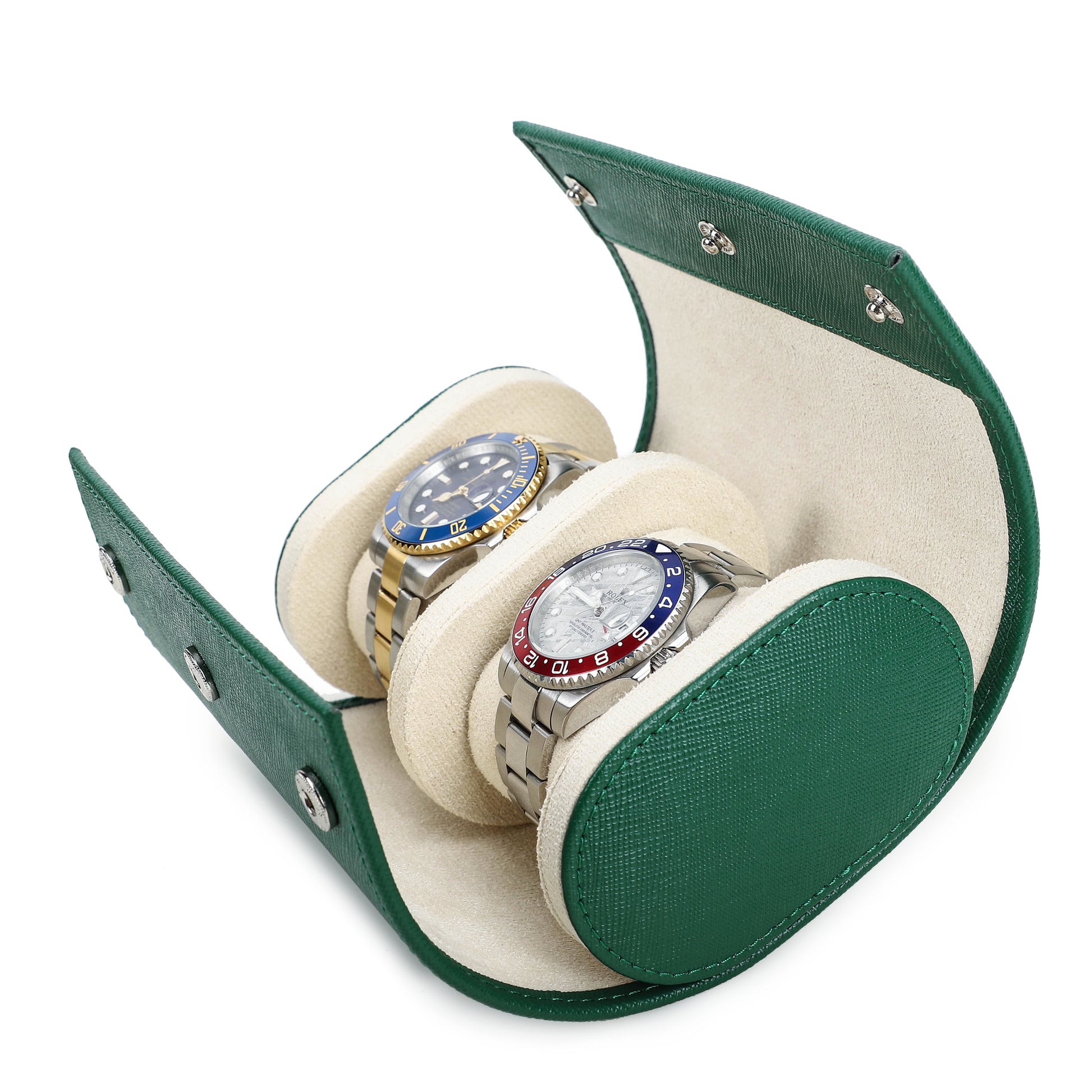 Timezone - Leren Watch roll voor 2 Horloges - Horloge Reisetui - Groen