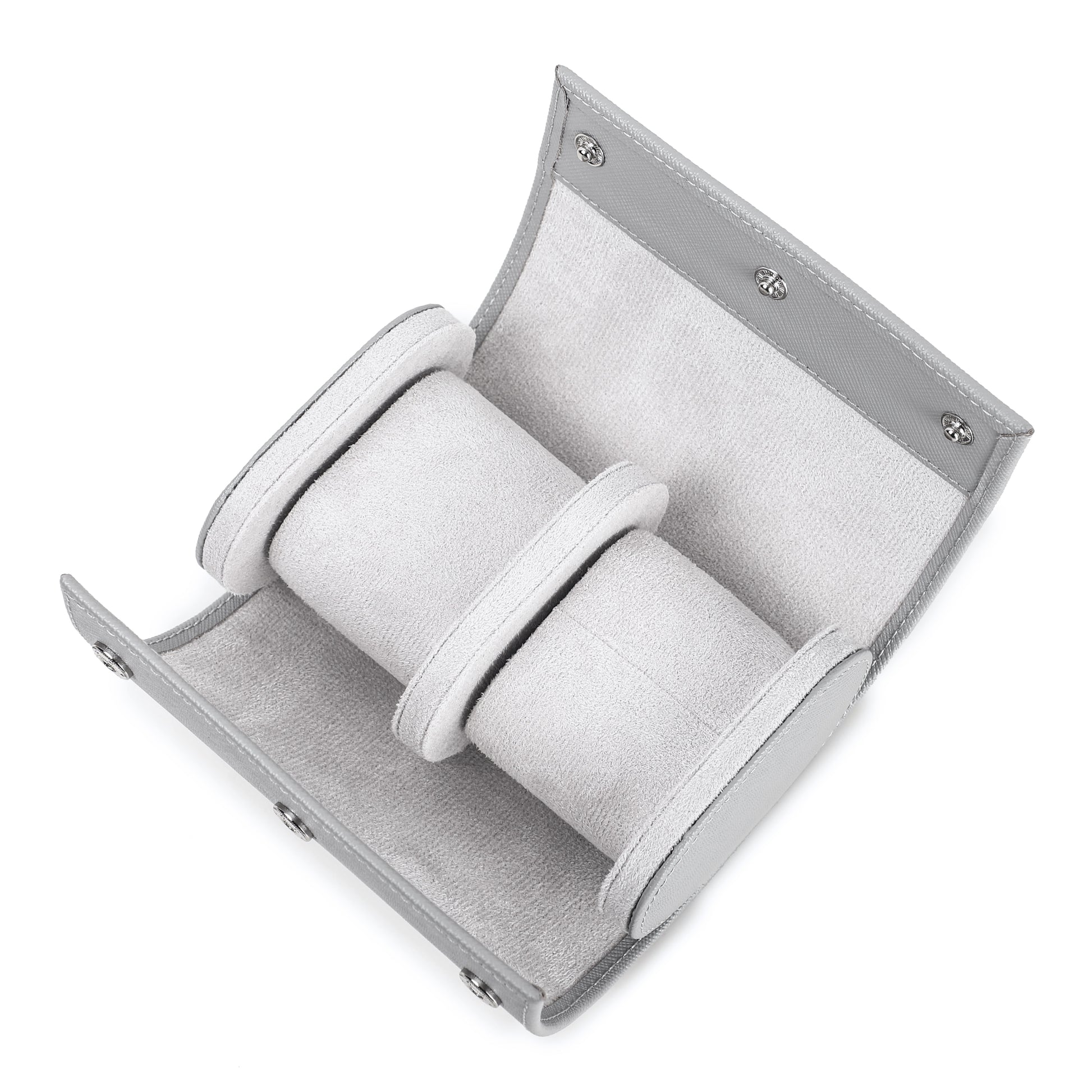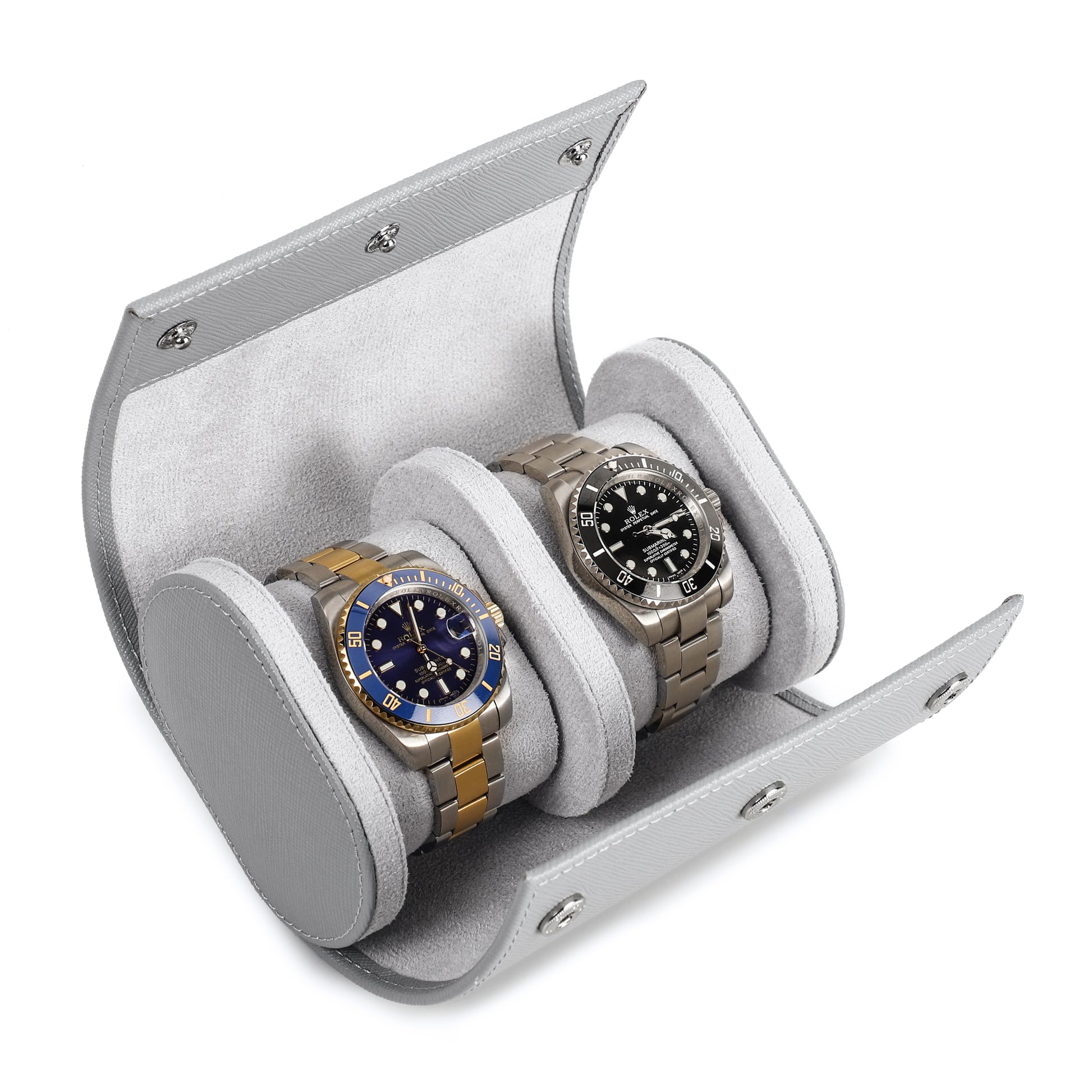 De Timezone watch roll is ontworpen om twee horloge op te bergen. De compartimenten zijn gescheiden om ervoor te zorgen dat uw horloges goed beschermd zijn. De buitenkant van de watch roll kan worden gesloten met twee stevige, externe drukknopen, die ervoor zorgen dat het etui gesloten blijft tijdens het reizen.