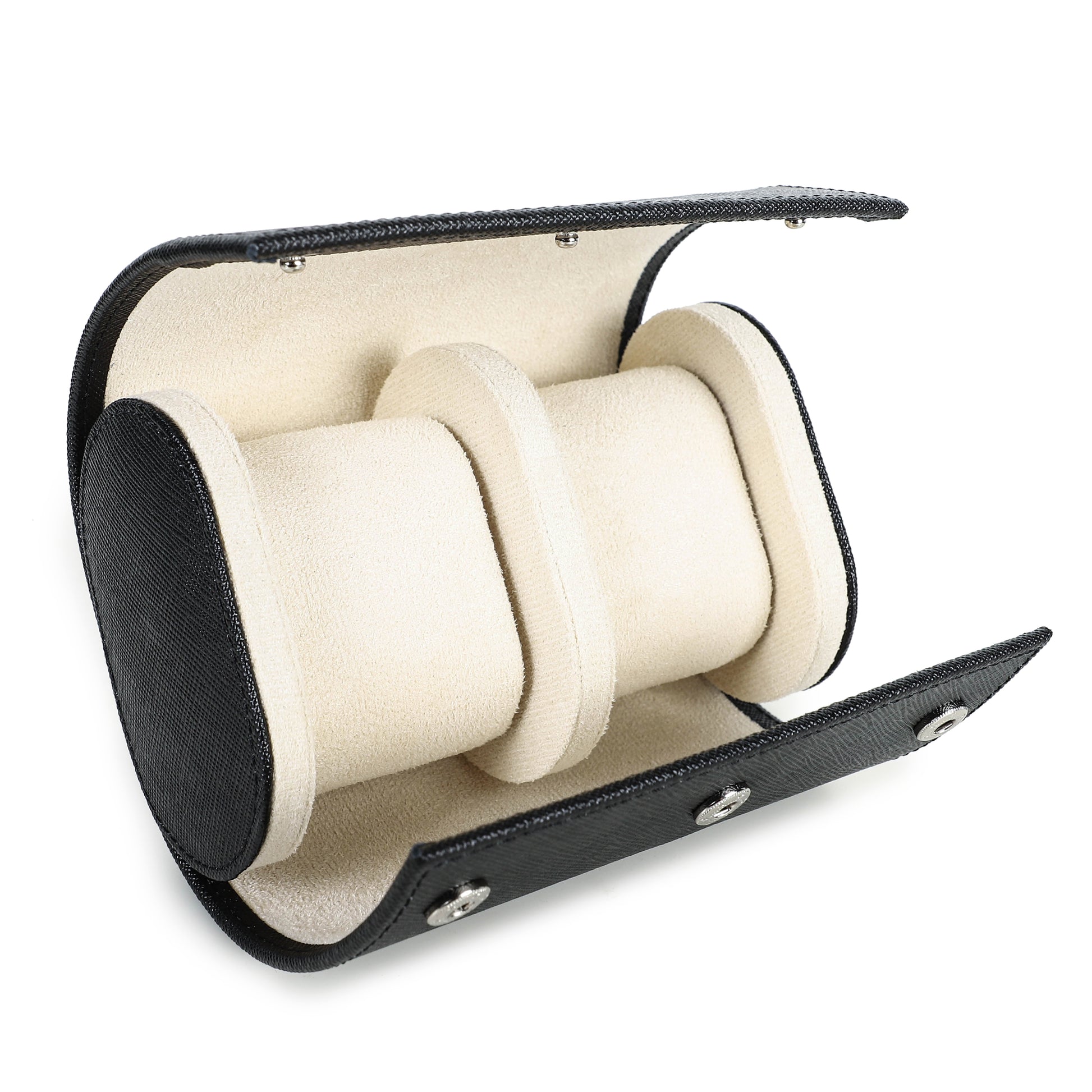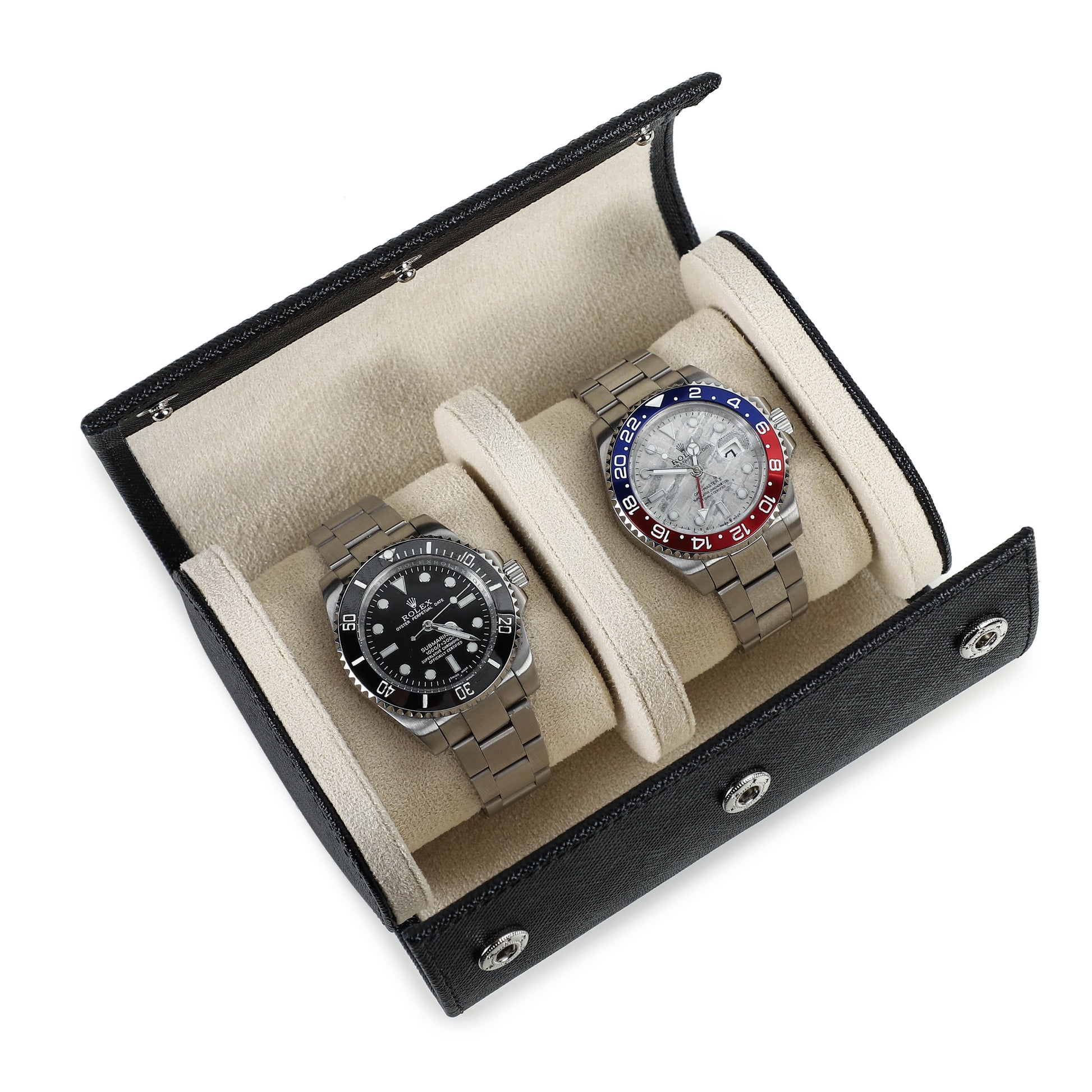 Timezone - Leren Watch roll voor 2 Horloges - Horloge Reisetui - Zwart