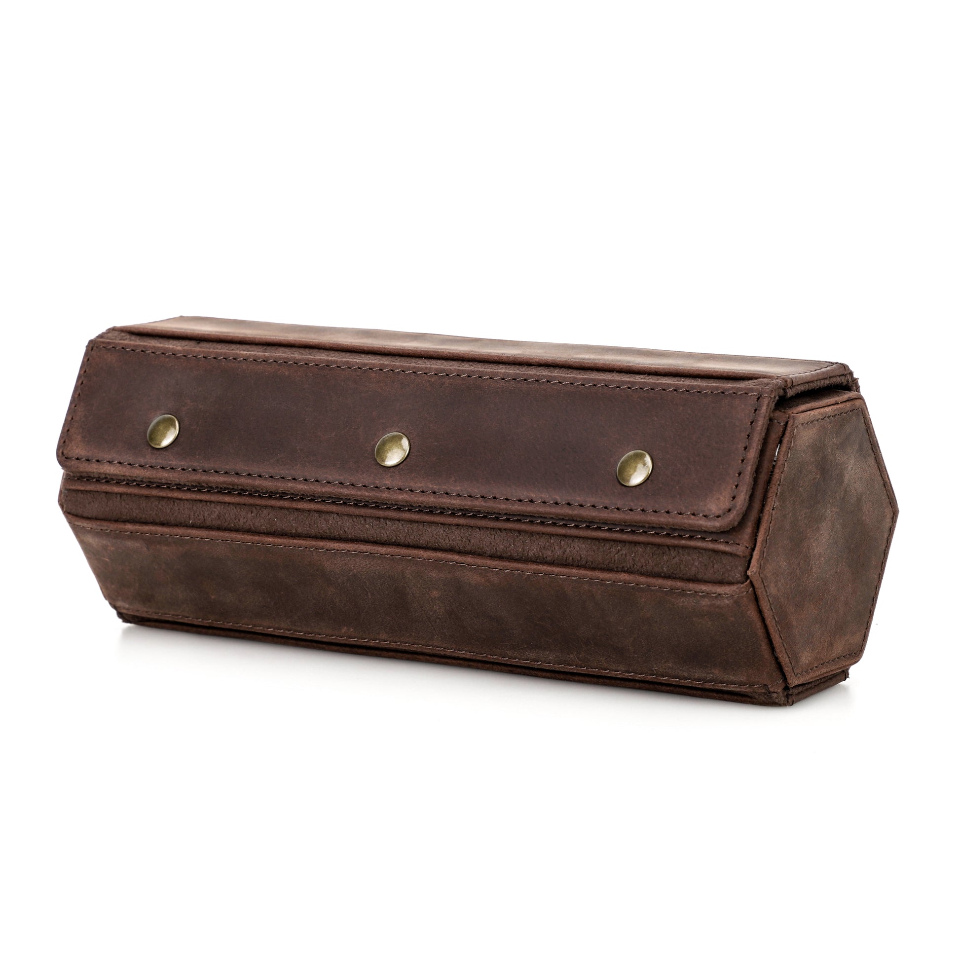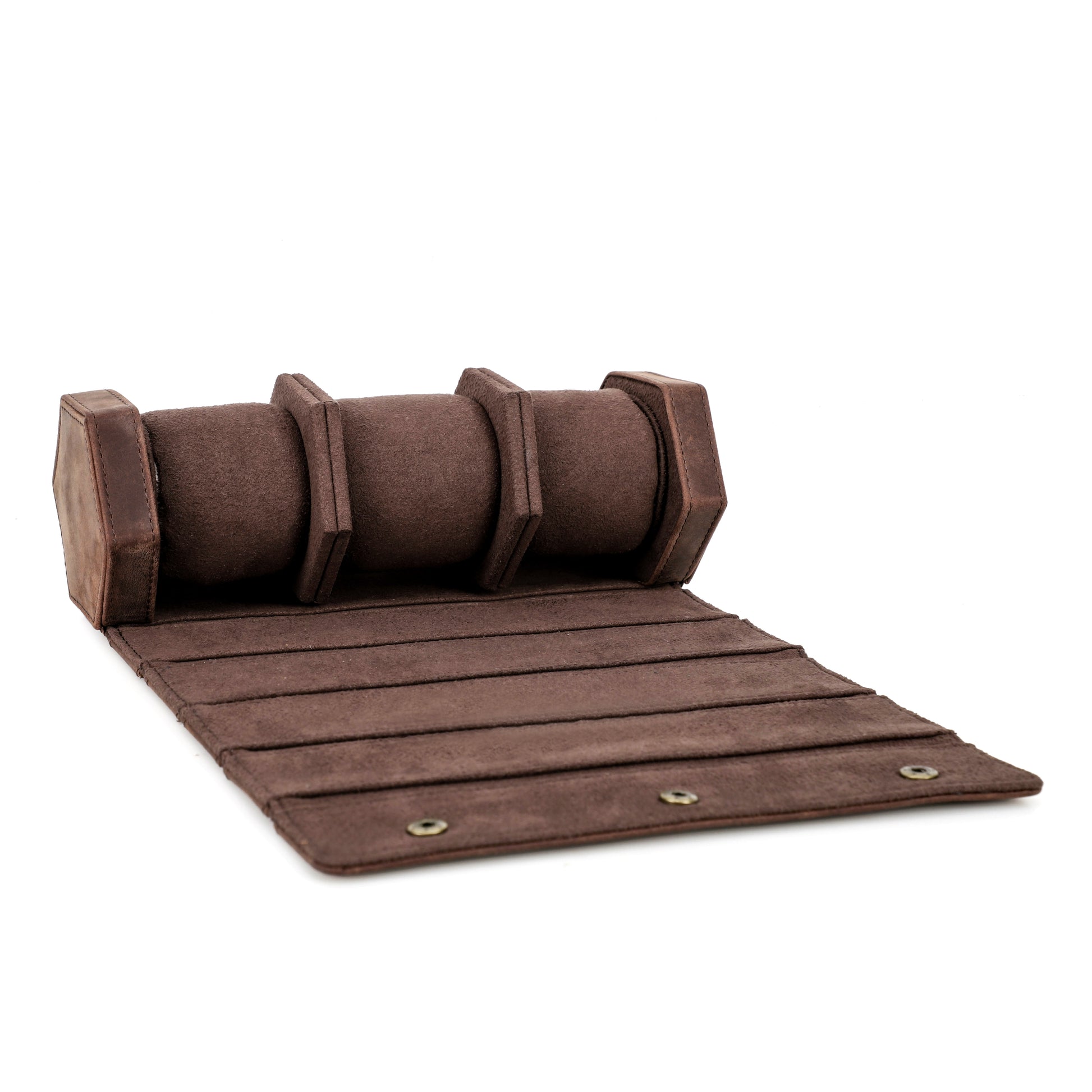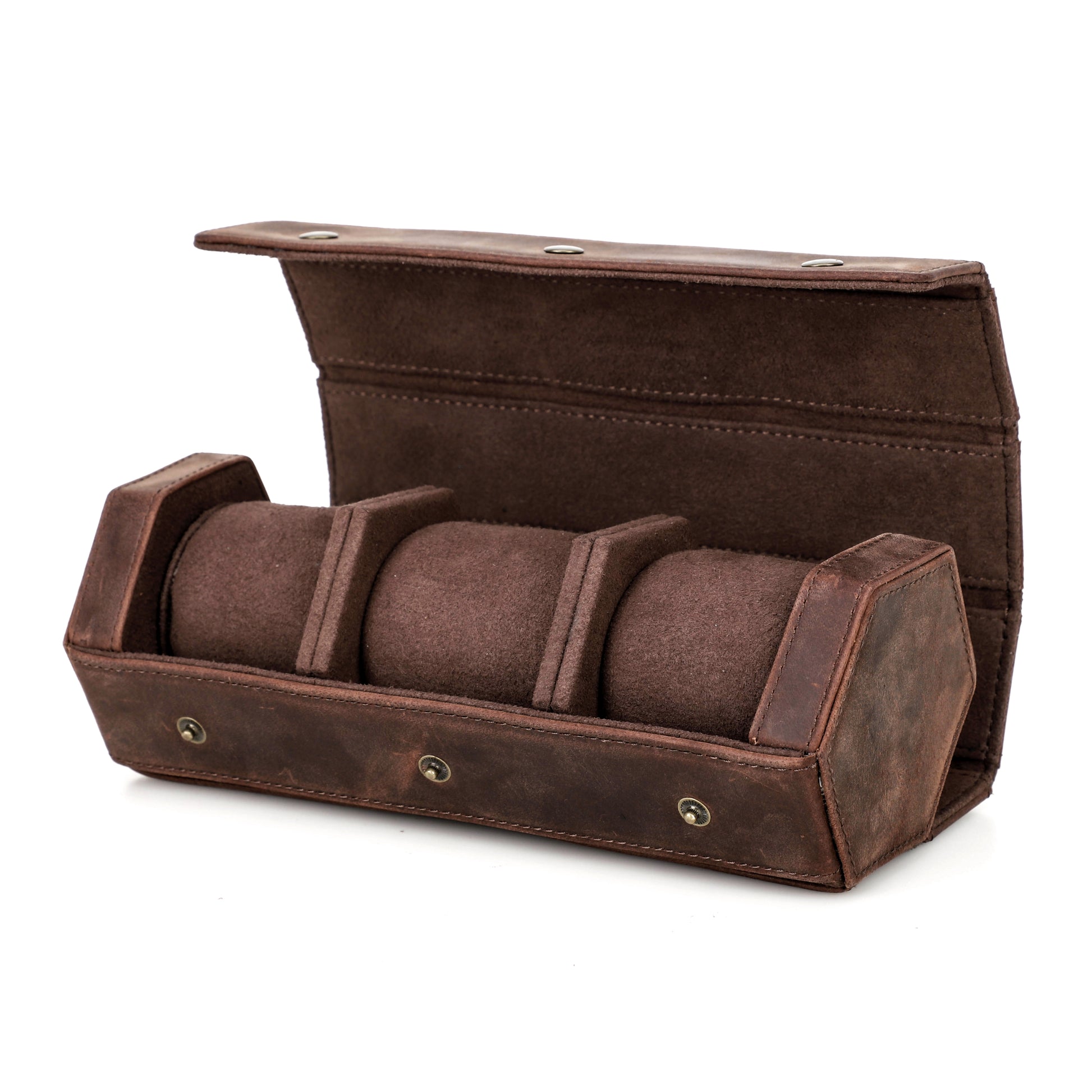 De Timezone watch roll is ontworpen om drie horloges op te bergen. De compartimenten zijn gescheiden om ervoor te zorgen dat uw horloges goed beschermd zijn. De buitenkant van de watch roll kan worden gesloten met drie stevige, externe drukknopen, die ervoor zorgen dat het etui gesloten blijft tijdens het reizen.