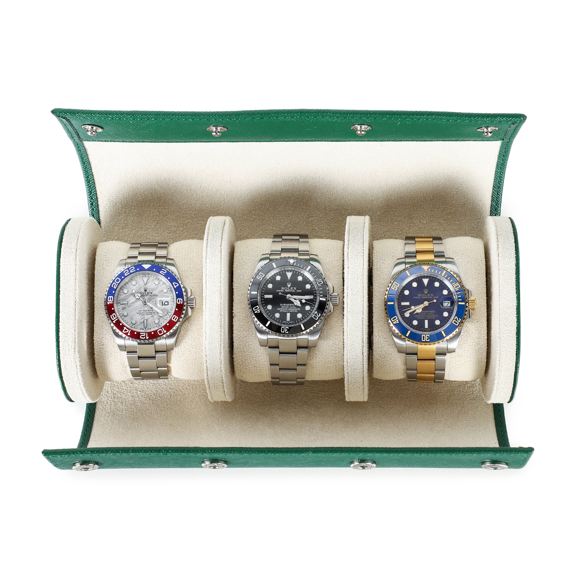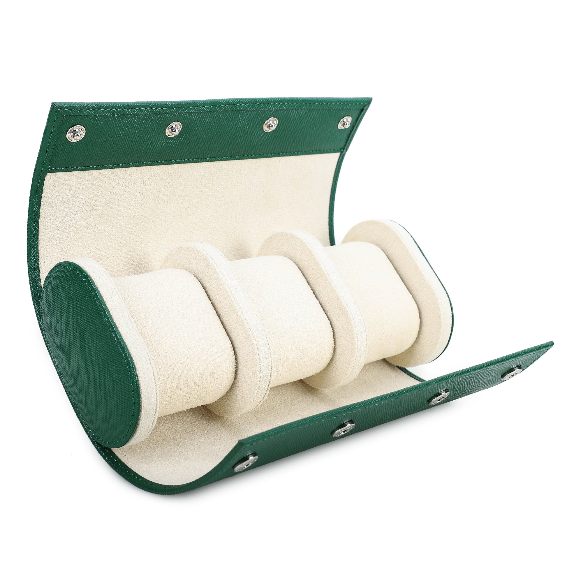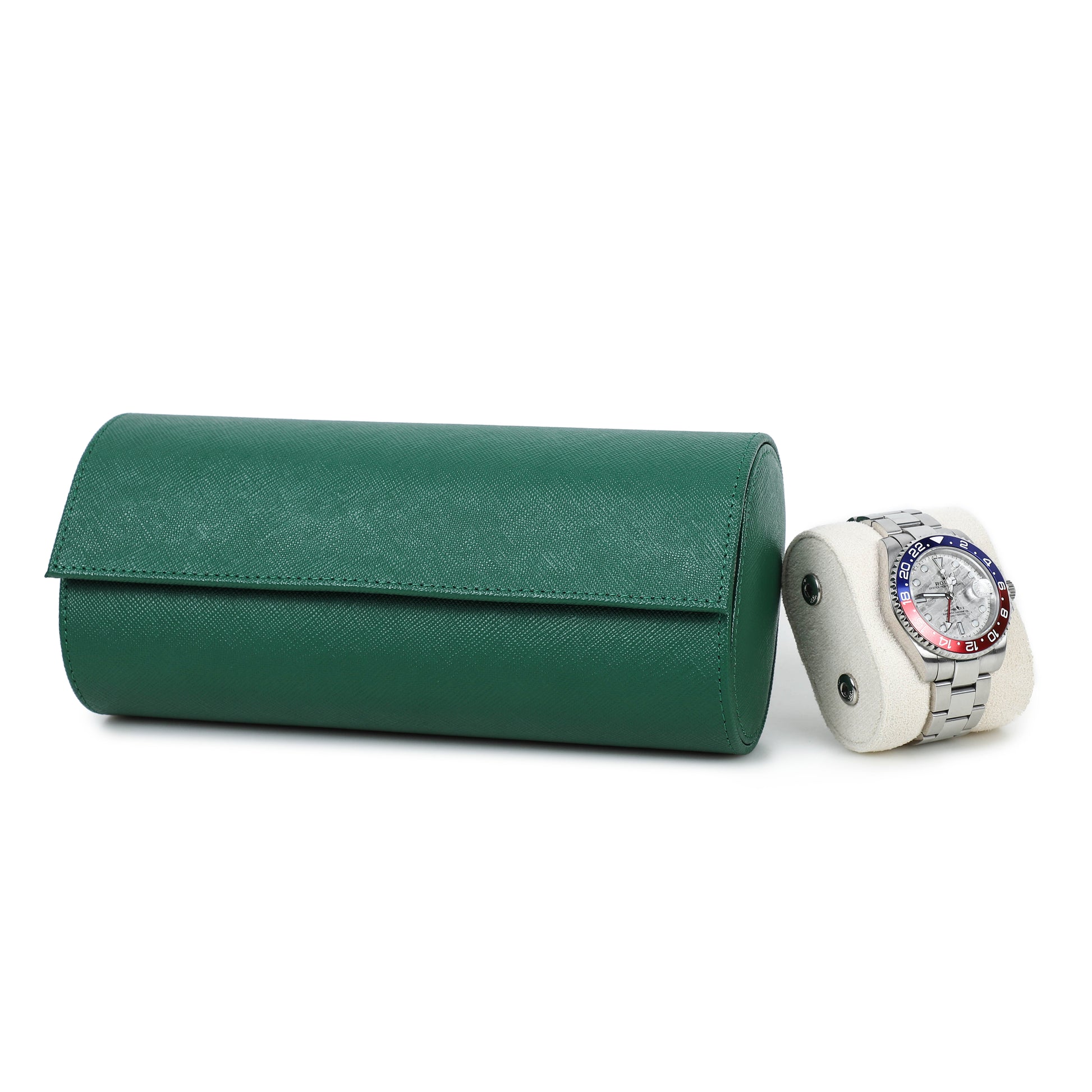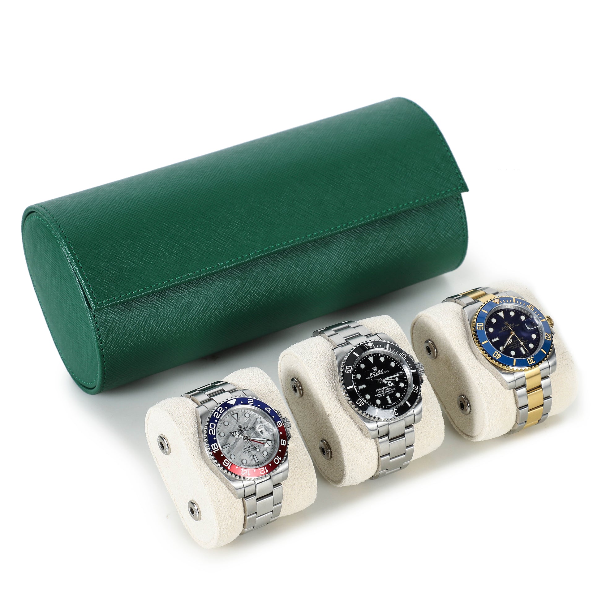 Timezone - Leren Watch roll voor 3 Horloges - Horloge Reisetui - Groen