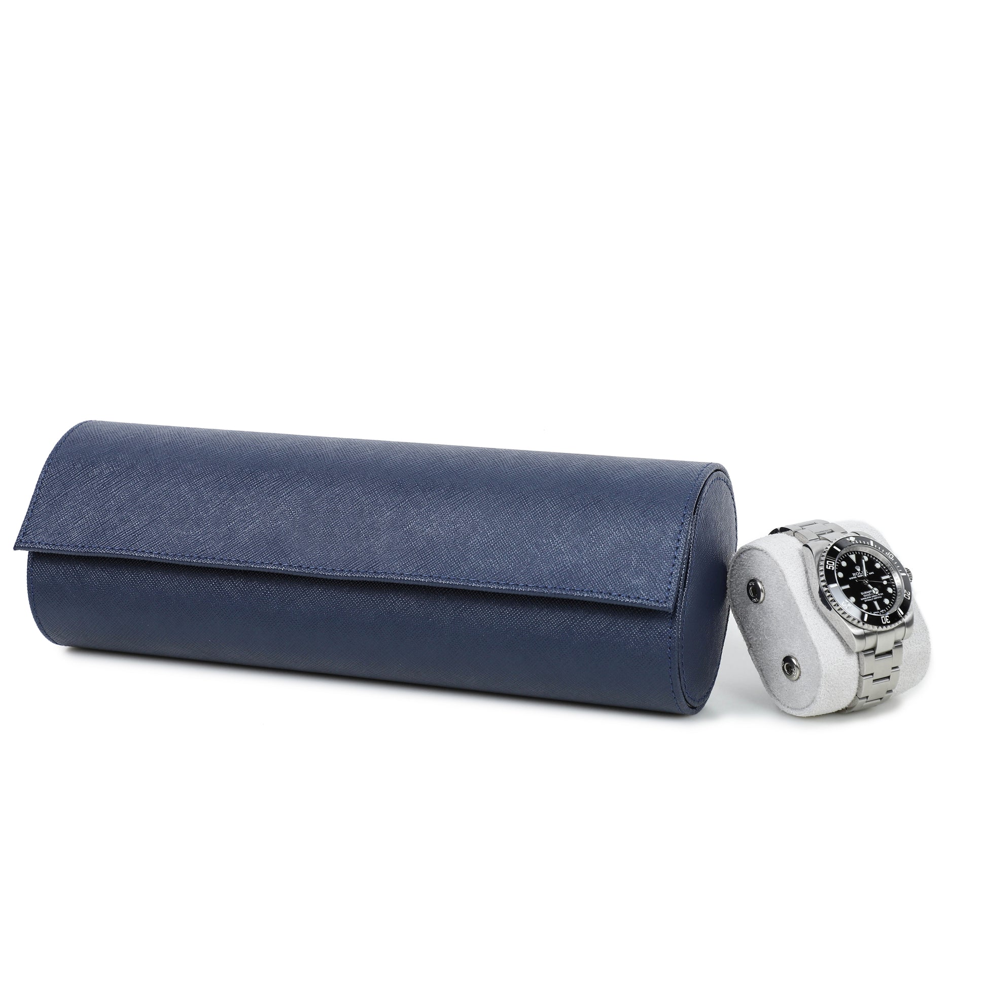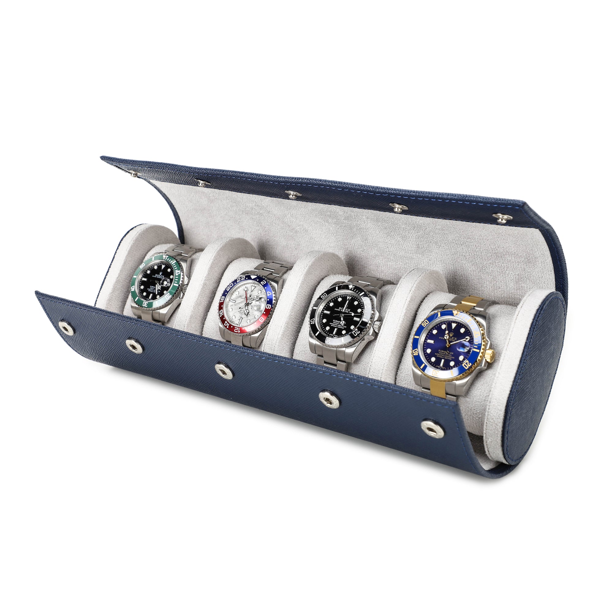 Timezone - Leren Watch roll voor 4 Horloges - Horloge Reisetui - Blauw