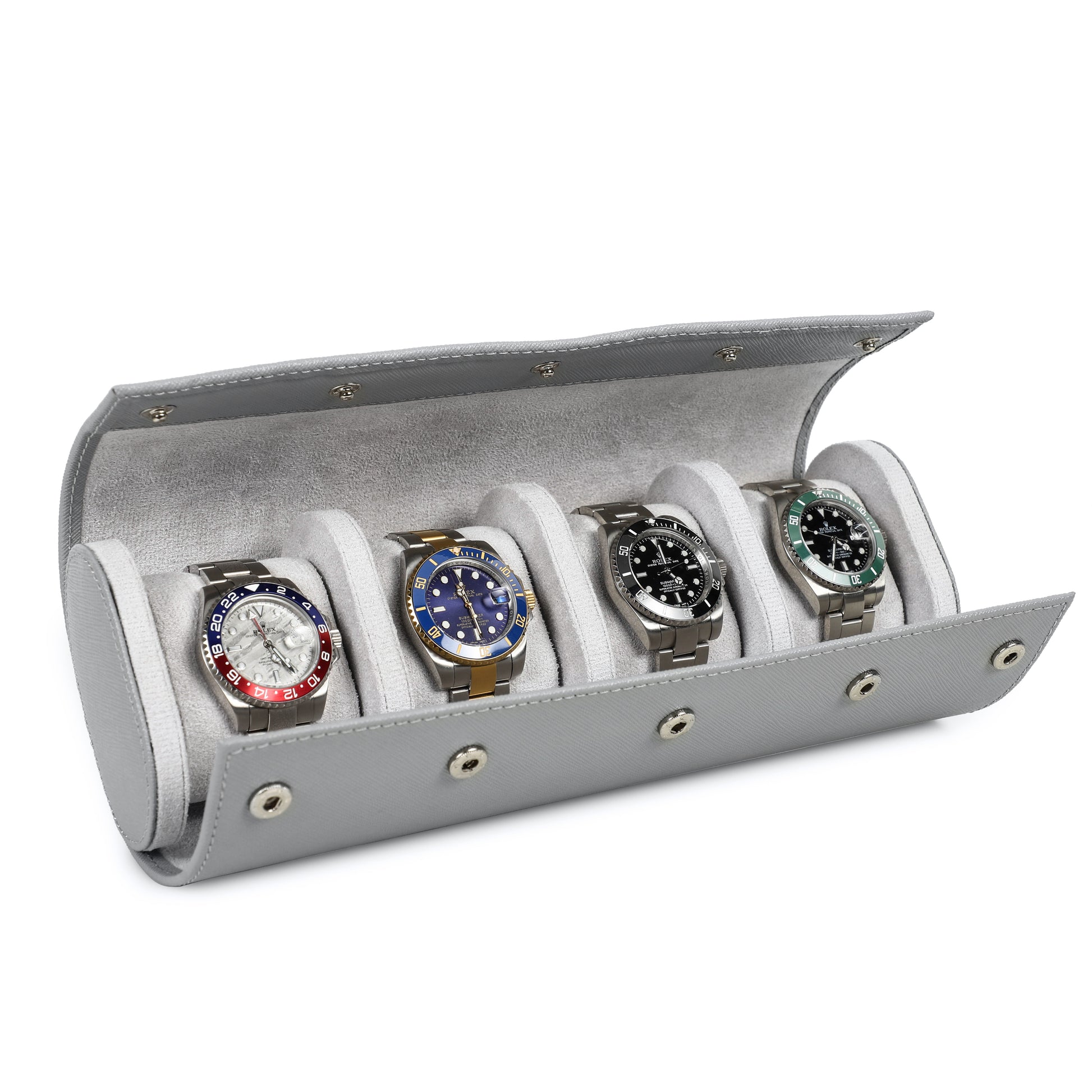 Timezone - Leren Watch roll voor 4 Horloges - Horloge Reisetui - Grijs