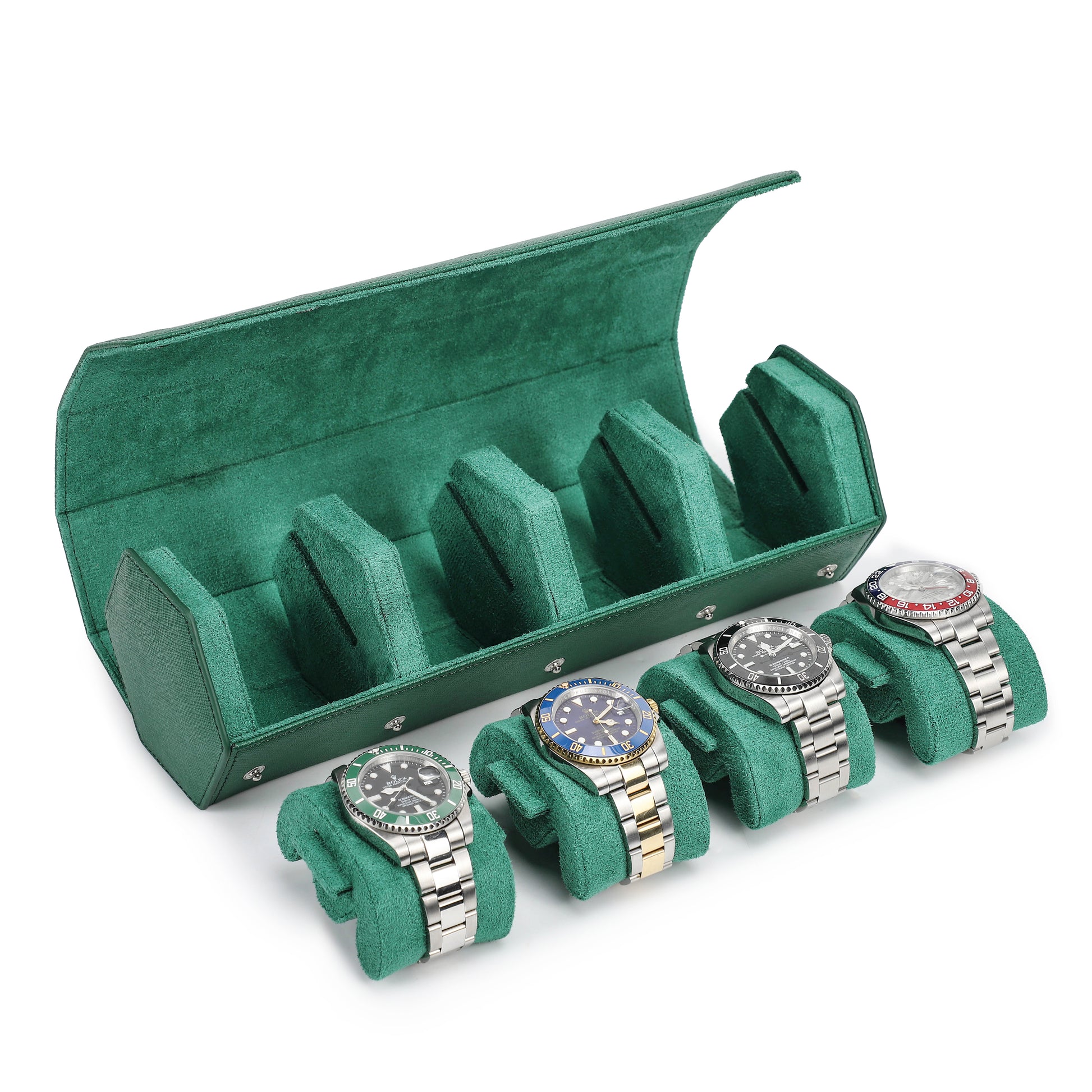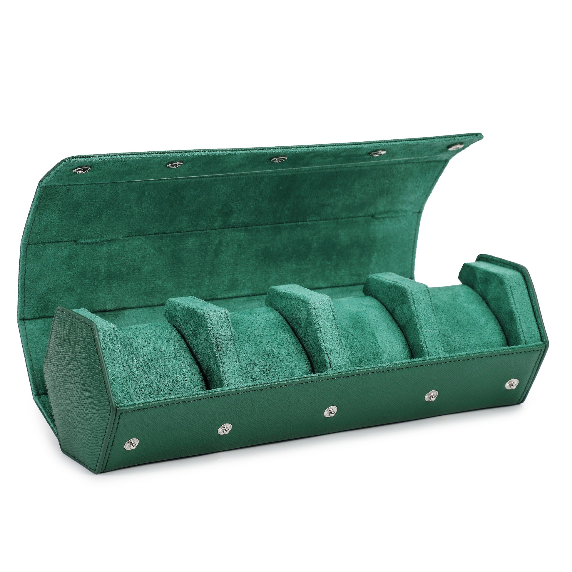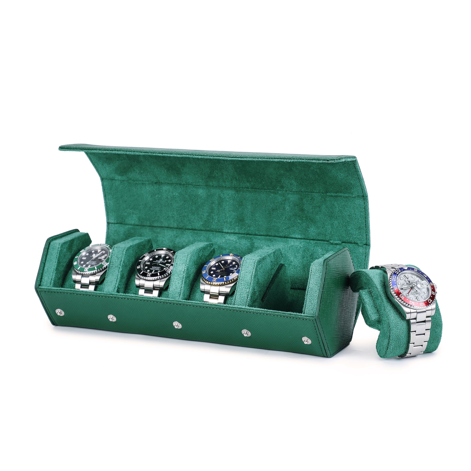 Timezone - Leren Watch roll voor 4 Horloges - Horloge Reisetui - Groen