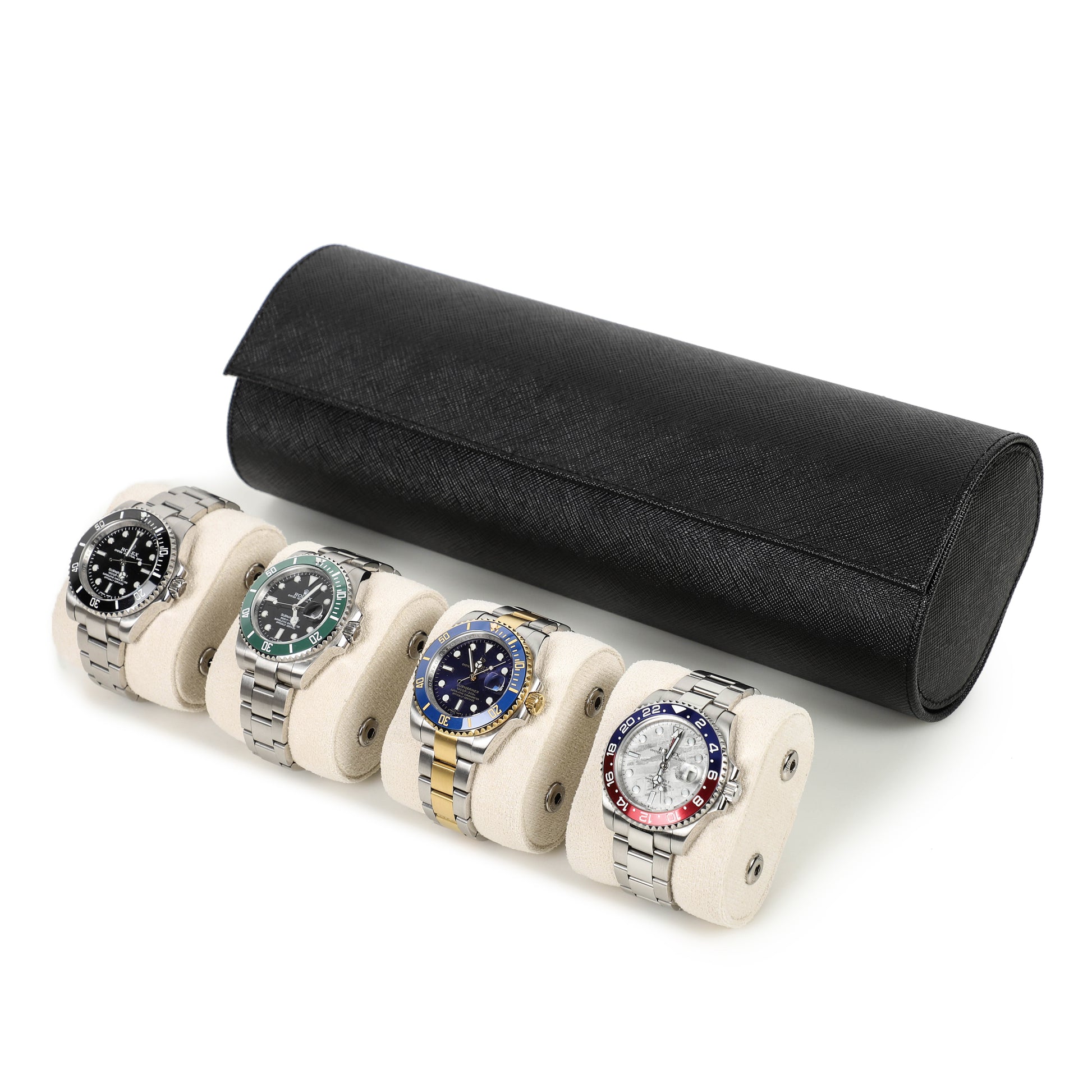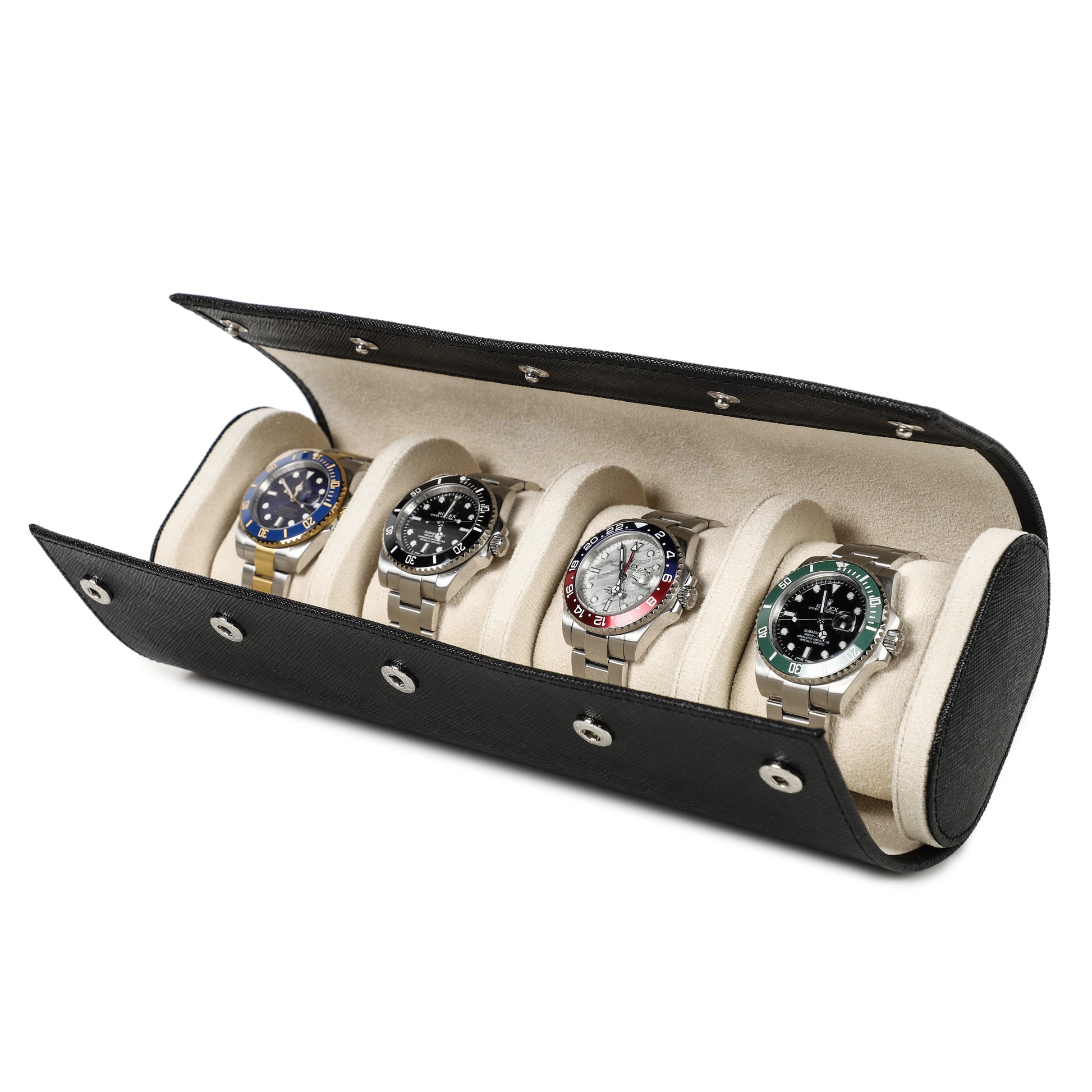 Timezone - Leren Watch roll voor 4 Horloges - Horloge Reisetui - Zwart