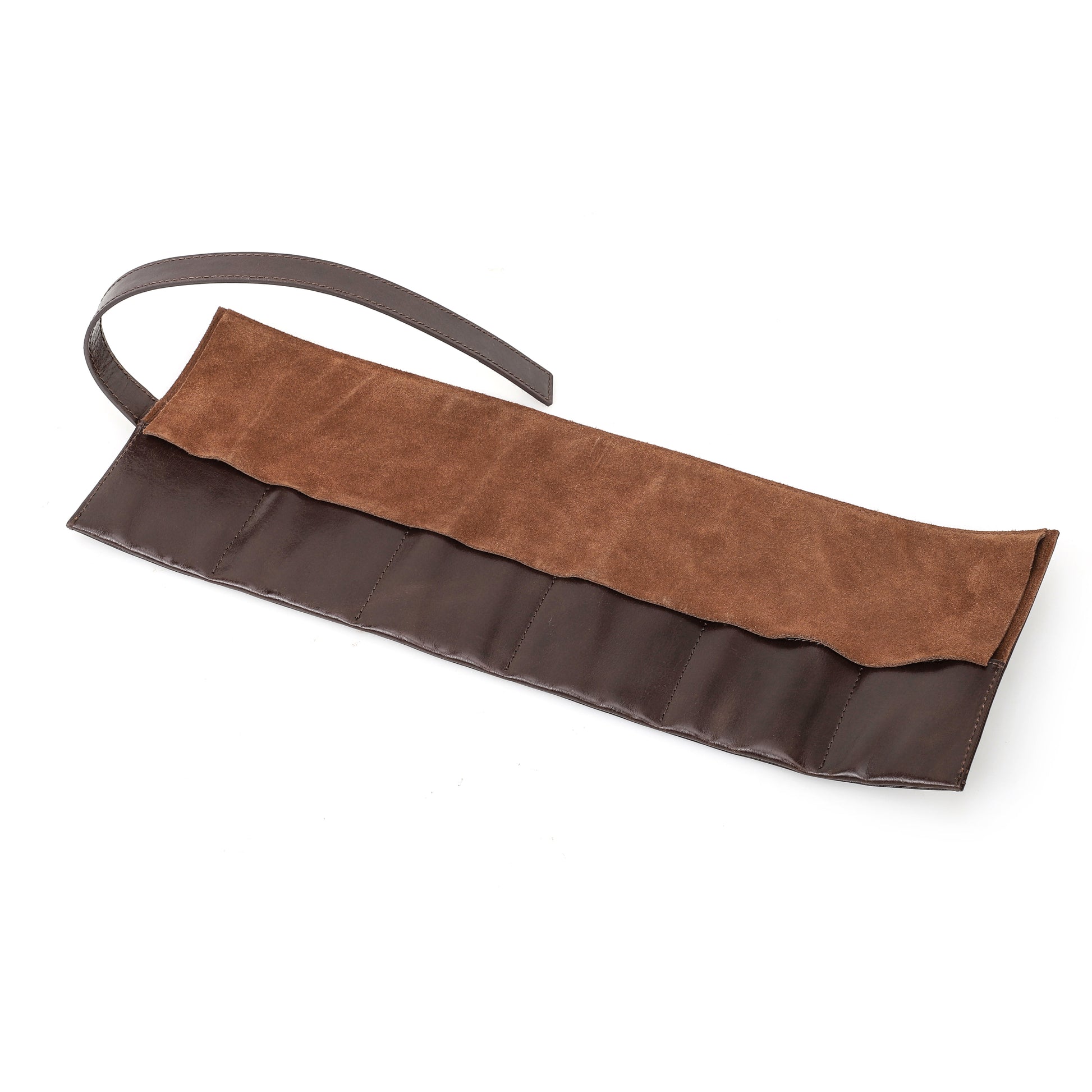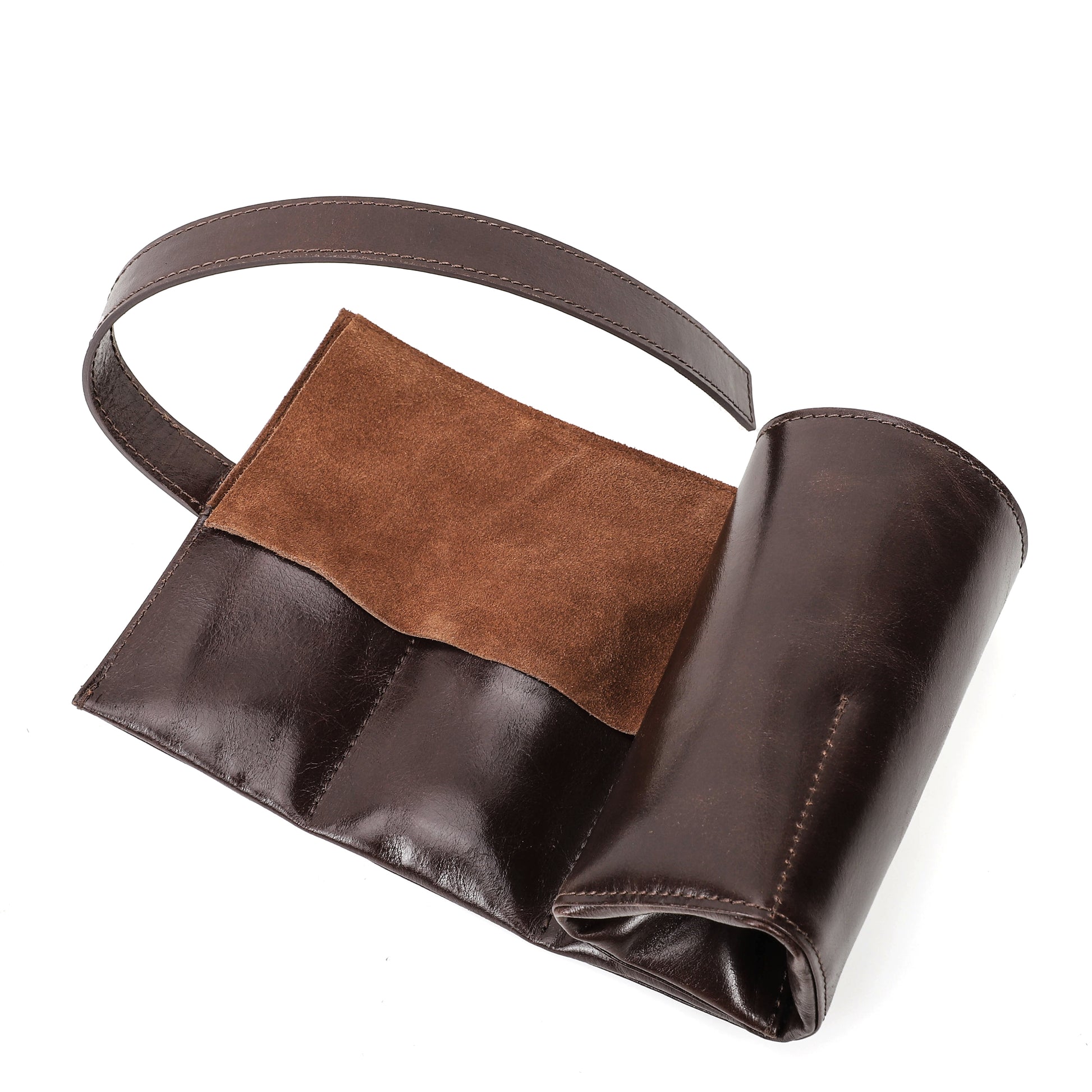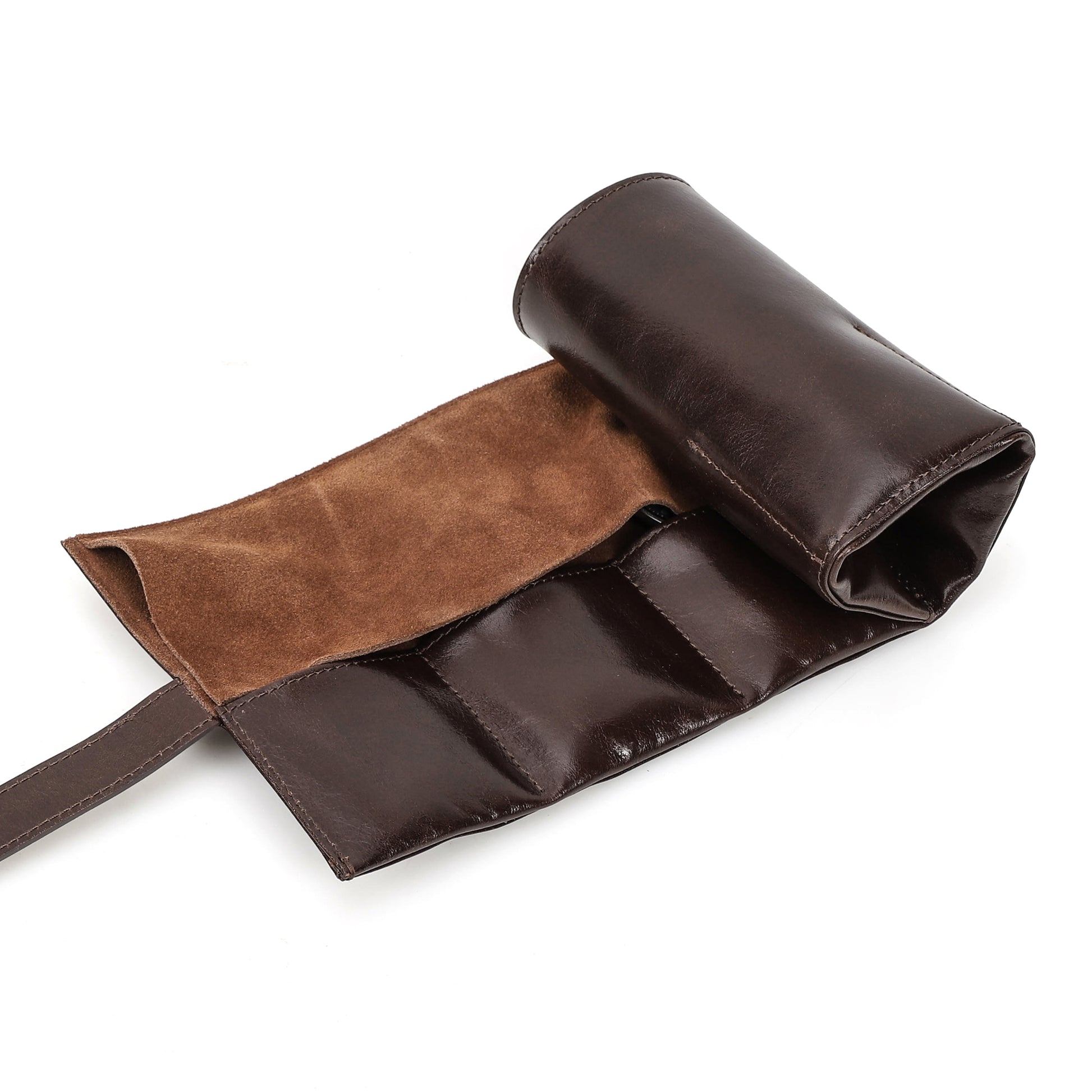 Handgemaakt van echt leer en afgewerkt met suède aan de binnenkant, biedt deze watch roll een luxe en duurzame bescherming voor uw horloges. De leersoort is door en door geverfd, opgeschuurd en voorzien van een finish, wat zorgt voor een pure en elegante uitstraling.