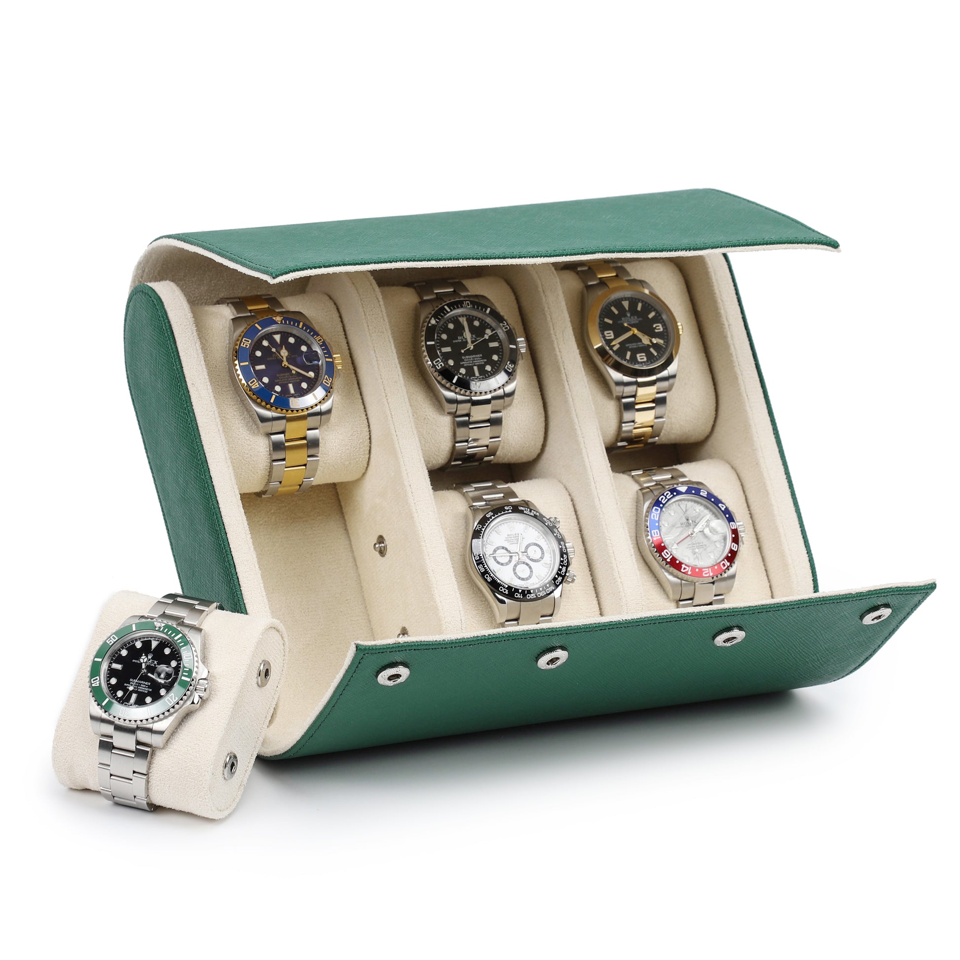 Timezone - Leren Watch roll voor 6 Horloges - Horloge Reisetui - Groen